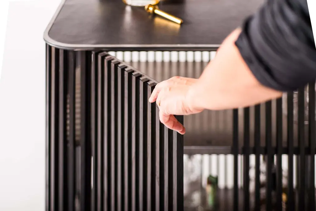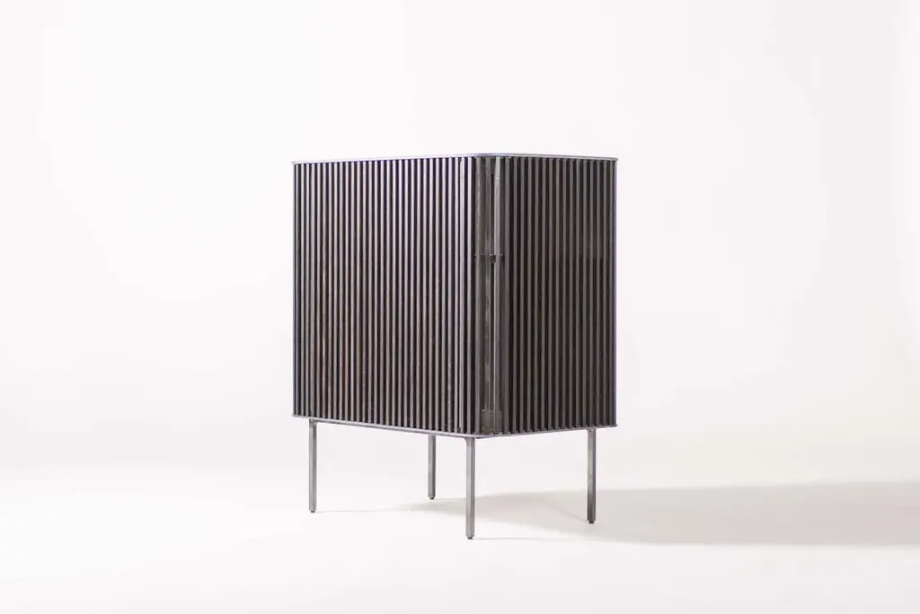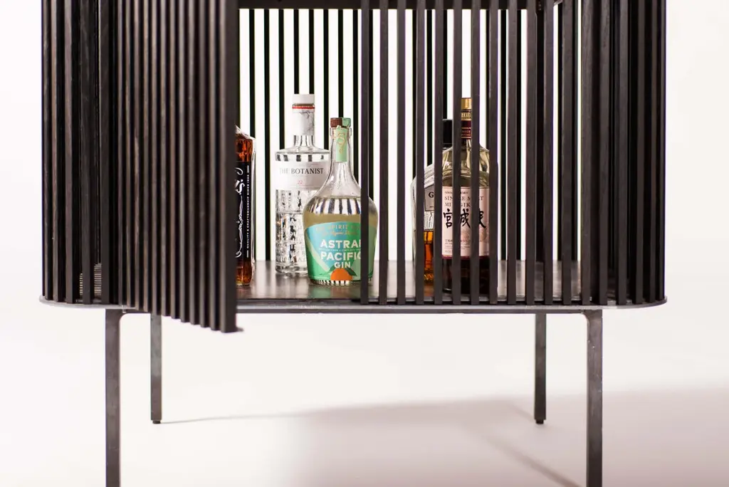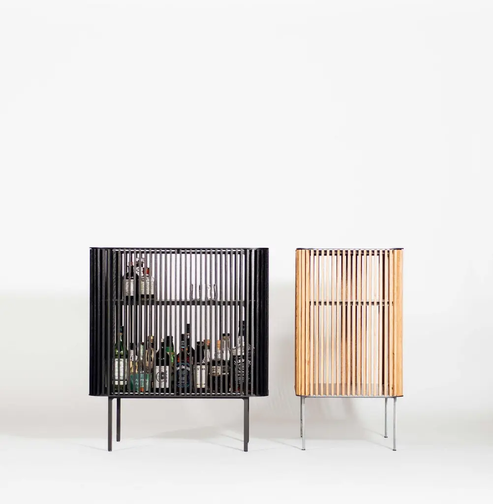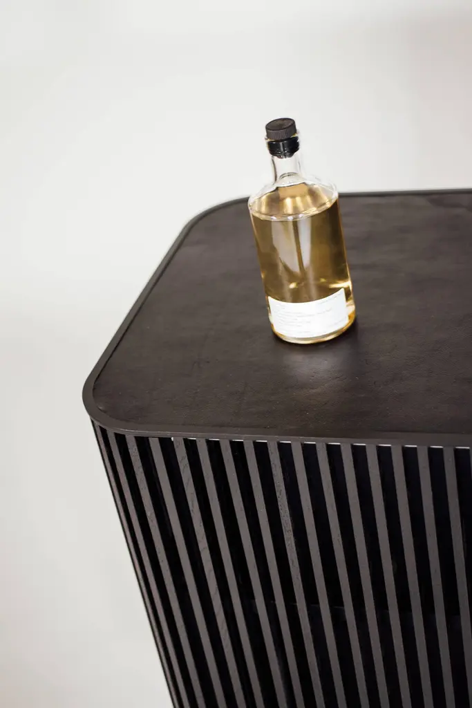 Be it in the gentleman’s corner of your apartment or centre stage in your living room, this contemporary Dry Bar in its simplicity, serves as a humble vessel for your most precious liquids. The opacity of the ribbed wood enclosure allows for one’s imagination to run wild. It is only when viewed from select angles that the bar reveals its possessions. Slip a finger through the wood slats on its front to effortlessly pull open its doors and reveal a splendor of hidden vices. A leather top makes your drink prep all the more enjoyable. Beautifully aging with time, the minimal Bar by Klein Agency will serve as a trusted companion for years to come.