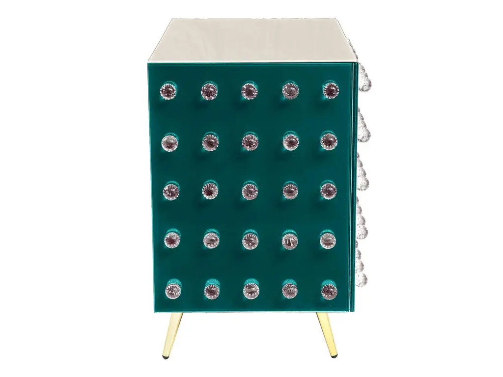 Dry bar luxury in handcrafted Murano glass made in Italy Justfurnituress DesignDiscover the exceptional Murano glass bar cabinet, a unique piece crafted by JustFurnituress that combines Italian artisanal tradition with modern and sophisticated design. This cabinet is perfect for those looking to add a touch of luxury and refinement to their space.### Key Features:- High-Quality Materials: The cabinet's structure is made from your choice of birch, poplar, or walnut wood, ensuring durability and stability. The brass legs not only provide sturdy support but also add a touch of elegance.- Unique Design: The blue and white mirrored panels give the cabinet a contemporary and bright appearance, while the 'jewel' spheres made of Murano glass catch the light and enchant guests. Each piece is handcrafted, making it unique and one-of-a-kind.- Customization: This cabinet is fully customizable in colors and styles. You can choose the wood, finish, and decorative details to create a piece that perfectly fits your decor and personal taste.- Functionality: Designed to hold a variety of alcoholic beverages, glasses, and bar accessories, this cabinet is ideal for entertaining guests. The open design encourages social interaction, making every occasion special.- Italian Craftsmanship: Each cabinet is the result of a meticulous production process that takes 5-6 weeks. This investment in design and craftsmanship ensures a quality piece that will last for years to come.### Why Choose This Cabinet?Adding this Murano glass bar cabinet, made by JustFurnituress, to your home means selecting a product that is not only functional but also a work of art. The beauty of Murano glass, combined with high-quality materials and attention to detail, makes this cabinet a distinctive element in your decor.Perfect for living rooms, dining areas, or bar zones, this cabinet will be the focal point of your entertaining occasions. Whether for an elegant dinner or an informal gathering with friends, our cabinet represents an exclusive way to enhance your space.### Contact UsDon't miss the opportunity to own a unique piece of artisanal furniture by JustFurnituress. Contact us for more information on customization options and to discover how this extraordinary Murano glass bar cabinet can transform your space. Add a touch of elegance and sophistication to your home with our bar cabinet-an investment in beauty and functionality.
