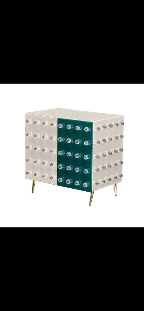 Dry bar luxury in handcrafted Murano glass made in Italy Justfurnituress DesignDiscover the exceptional Murano glass bar cabinet, a unique piece crafted by JustFurnituress that combines Italian artisanal tradition with modern and sophisticated design. This cabinet is perfect for those looking to add a touch of luxury and refinement to their space.### Key Features:- High-Quality Materials: The cabinet's structure is made from your choice of birch, poplar, or walnut wood, ensuring durability and stability. The brass legs not only provide sturdy support but also add a touch of elegance.- Unique Design: The blue and white mirrored panels give the cabinet a contemporary and bright appearance, while the 'jewel' spheres made of Murano glass catch the light and enchant guests. Each piece is handcrafted, making it unique and one-of-a-kind.- Customization: This cabinet is fully customizable in colors and styles. You can choose the wood, finish, and decorative details to create a piece that perfectly fits your decor and personal taste.- Functionality: Designed to hold a variety of alcoholic beverages, glasses, and bar accessories, this cabinet is ideal for entertaining guests. The open design encourages social interaction, making every occasion special.- Italian Craftsmanship: Each cabinet is the result of a meticulous production process that takes 5-6 weeks. This investment in design and craftsmanship ensures a quality piece that will last for years to come.### Why Choose This Cabinet?Adding this Murano glass bar cabinet, made by JustFurnituress, to your home means selecting a product that is not only functional but also a work of art. The beauty of Murano glass, combined with high-quality materials and attention to detail, makes this cabinet a distinctive element in your decor.Perfect for living rooms, dining areas, or bar zones, this cabinet will be the focal point of your entertaining occasions. Whether for an elegant dinner or an informal gathering with friends, our cabinet represents an exclusive way to enhance your space.### Contact UsDon't miss the opportunity to own a unique piece of artisanal furniture by JustFurnituress. Contact us for more information on customization options and to discover how this extraordinary Murano glass bar cabinet can transform your space. Add a touch of elegance and sophistication to your home with our bar cabinet-an investment in beauty and functionality.