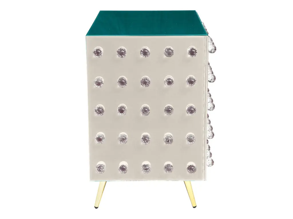 Dry bar luxury in handcrafted Murano glass made in Italy Justfurnituress DesignDiscover the exceptional Murano glass bar cabinet, a unique piece crafted by JustFurnituress that combines Italian artisanal tradition with modern and sophisticated design. This cabinet is perfect for those looking to add a touch of luxury and refinement to their space.### Key Features:- High-Quality Materials: The cabinet's structure is made from your choice of birch, poplar, or walnut wood, ensuring durability and stability. The brass legs not only provide sturdy support but also add a touch of elegance.- Unique Design: The blue and white mirrored panels give the cabinet a contemporary and bright appearance, while the 'jewel' spheres made of Murano glass catch the light and enchant guests. Each piece is handcrafted, making it unique and one-of-a-kind.- Customization: This cabinet is fully customizable in colors and styles. You can choose the wood, finish, and decorative details to create a piece that perfectly fits your decor and personal taste.- Functionality: Designed to hold a variety of alcoholic beverages, glasses, and bar accessories, this cabinet is ideal for entertaining guests. The open design encourages social interaction, making every occasion special.- Italian Craftsmanship: Each cabinet is the result of a meticulous production process that takes 5-6 weeks. This investment in design and craftsmanship ensures a quality piece that will last for years to come.### Why Choose This Cabinet?Adding this Murano glass bar cabinet, made by JustFurnituress, to your home means selecting a product that is not only functional but also a work of art. The beauty of Murano glass, combined with high-quality materials and attention to detail, makes this cabinet a distinctive element in your decor.Perfect for living rooms, dining areas, or bar zones, this cabinet will be the focal point of your entertaining occasions. Whether for an elegant dinner or an informal gathering with friends, our cabinet represents an exclusive way to enhance your space.### Contact UsDon't miss the opportunity to own a unique piece of artisanal furniture by JustFurnituress. Contact us for more information on customization options and to discover how this extraordinary Murano glass bar cabinet can transform your space. Add a touch of elegance and sophistication to your home with our bar cabinet-an investment in beauty and functionality.