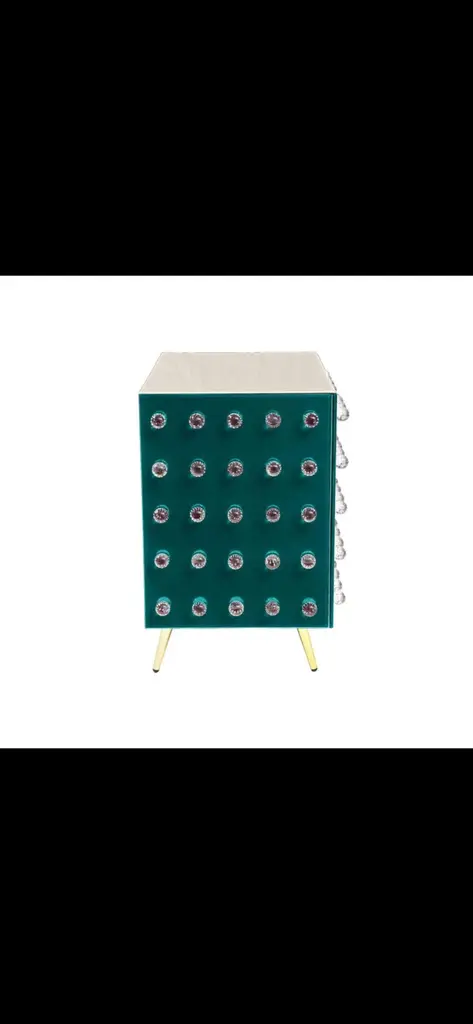 Dry bar luxury in handcrafted Murano glass made in Italy Justfurnituress DesignDiscover the exceptional Murano glass bar cabinet, a unique piece crafted by JustFurnituress that combines Italian artisanal tradition with modern and sophisticated design. This cabinet is perfect for those looking to add a touch of luxury and refinement to their space.### Key Features:- High-Quality Materials: The cabinet's structure is made from your choice of birch, poplar, or walnut wood, ensuring durability and stability. The brass legs not only provide sturdy support but also add a touch of elegance.- Unique Design: The blue and white mirrored panels give the cabinet a contemporary and bright appearance, while the 'jewel' spheres made of Murano glass catch the light and enchant guests. Each piece is handcrafted, making it unique and one-of-a-kind.- Customization: This cabinet is fully customizable in colors and styles. You can choose the wood, finish, and decorative details to create a piece that perfectly fits your decor and personal taste.- Functionality: Designed to hold a variety of alcoholic beverages, glasses, and bar accessories, this cabinet is ideal for entertaining guests. The open design encourages social interaction, making every occasion special.- Italian Craftsmanship: Each cabinet is the result of a meticulous production process that takes 5-6 weeks. This investment in design and craftsmanship ensures a quality piece that will last for years to come.### Why Choose This Cabinet?Adding this Murano glass bar cabinet, made by JustFurnituress, to your home means selecting a product that is not only functional but also a work of art. The beauty of Murano glass, combined with high-quality materials and attention to detail, makes this cabinet a distinctive element in your decor.Perfect for living rooms, dining areas, or bar zones, this cabinet will be the focal point of your entertaining occasions. Whether for an elegant dinner or an informal gathering with friends, our cabinet represents an exclusive way to enhance your space.### Contact UsDon't miss the opportunity to own a unique piece of artisanal furniture by JustFurnituress. Contact us for more information on customization options and to discover how this extraordinary Murano glass bar cabinet can transform your space. Add a touch of elegance and sophistication to your home with our bar cabinet-an investment in beauty and functionality.