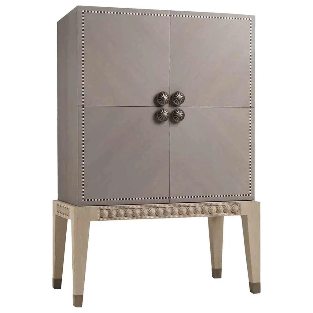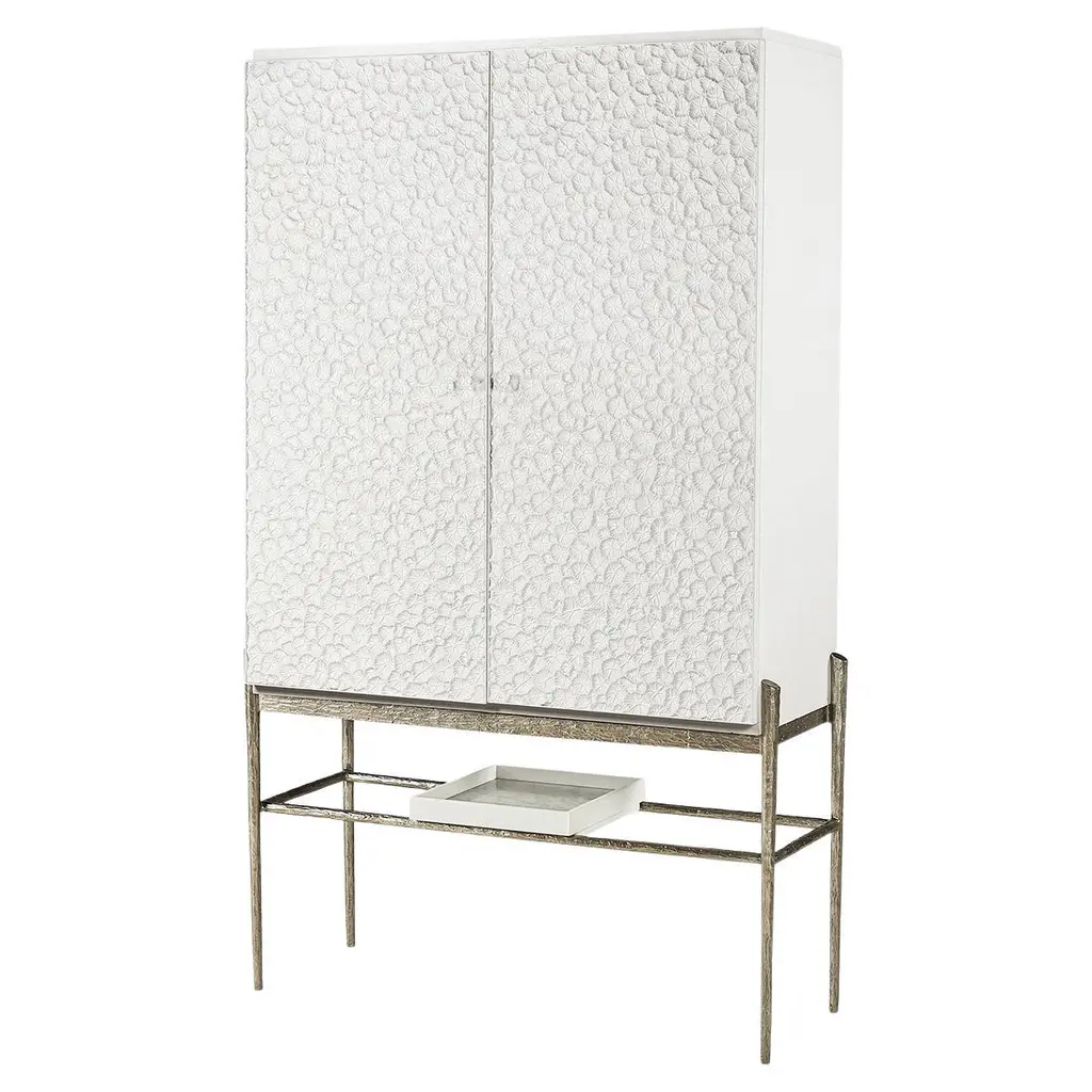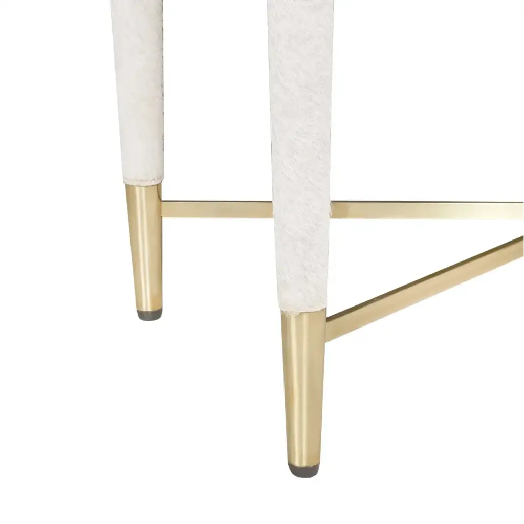 Home entertaining has never looked so fabulous. The Florian Tall Bar Cabinet is an essential piece for every host with the most, boasting a glamorous exterior and stunning reveals. A luxurious upgrade of Art Deco design, the cabinet is draped in plush white hair-on-hide with polished brass accents throughout, from its pulls to its crossbar and sabots. The wow-factor continues upon opening, where a swanky interior space boasts rich micro-suede, glass shelving, and a glittering mirrored back. With two center shelves, six fixed door shelves, and an additional hair-on-hide drawer within, the Florian provides plenty of storage for all your home bar needs. An upscale pick for any home, and especially useful in smaller spaces in need of compact storage.