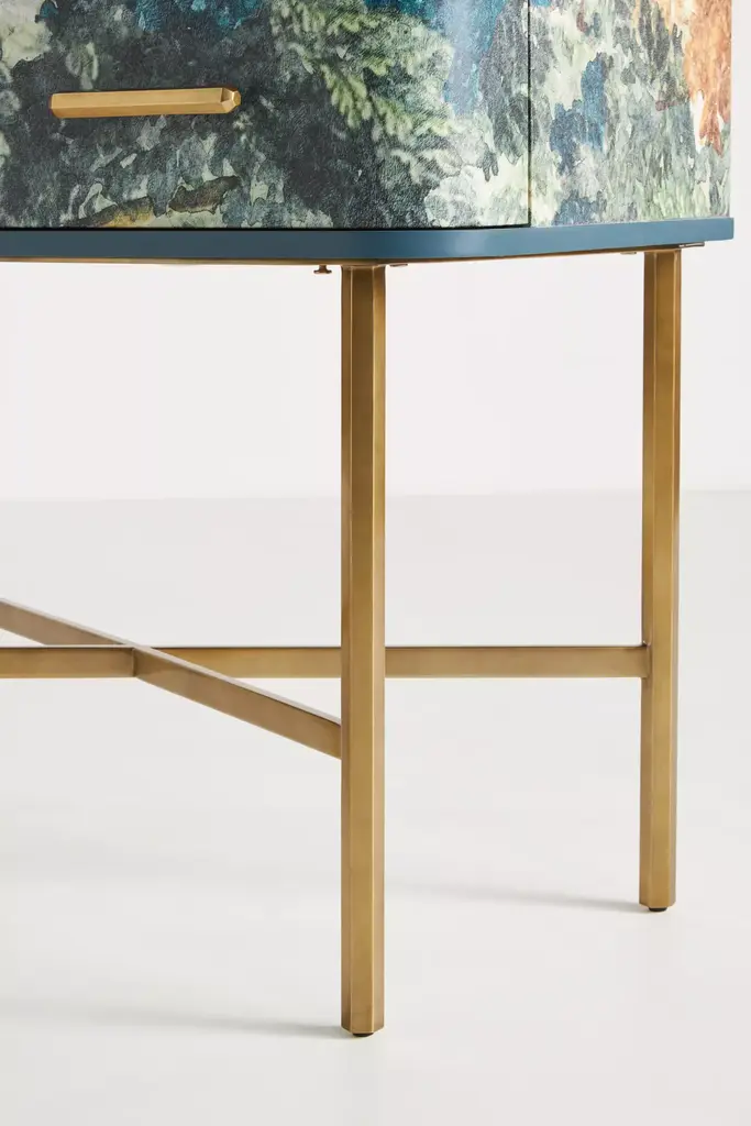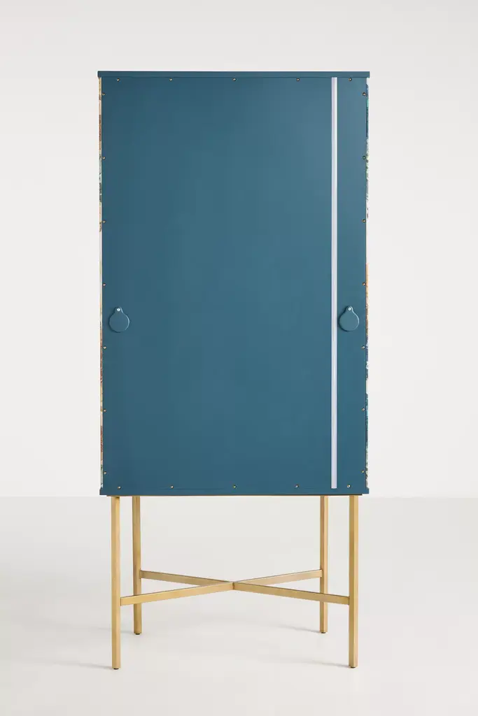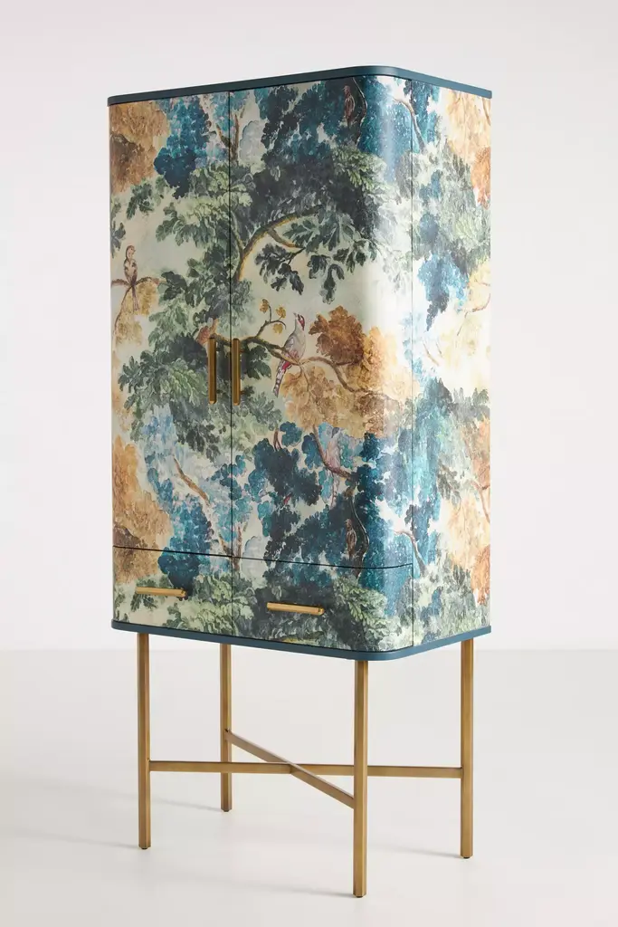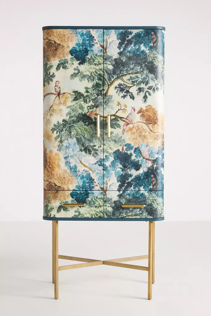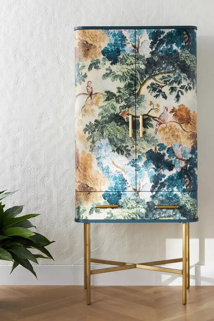 Featuring an enchanting Italian tapestry-inspired design, this bar cabinet merges impeccable woodworking craftsmanship with an elegantly soft silhouette. Pull its brass-accented doors to reveal a mirror, wine rack, glass rack, and plenty of storage space ready to host the ingredients for your signature drink. For ordering assistance and more, please [contact us](https://www.anthropologie.com/help/contact-us#contact-us-section-2). For aesthetic advice and tips to help decorate your space, enjoy our complimentary [home styling services](https://www.anthropologie.com/help/personal-styling-home-decor). For more information on the materials and techniques of this piece, [click here](https://www.anthropologie.com/help/material-care-guide).