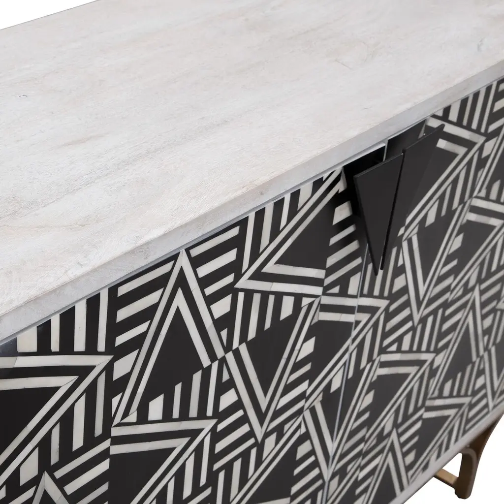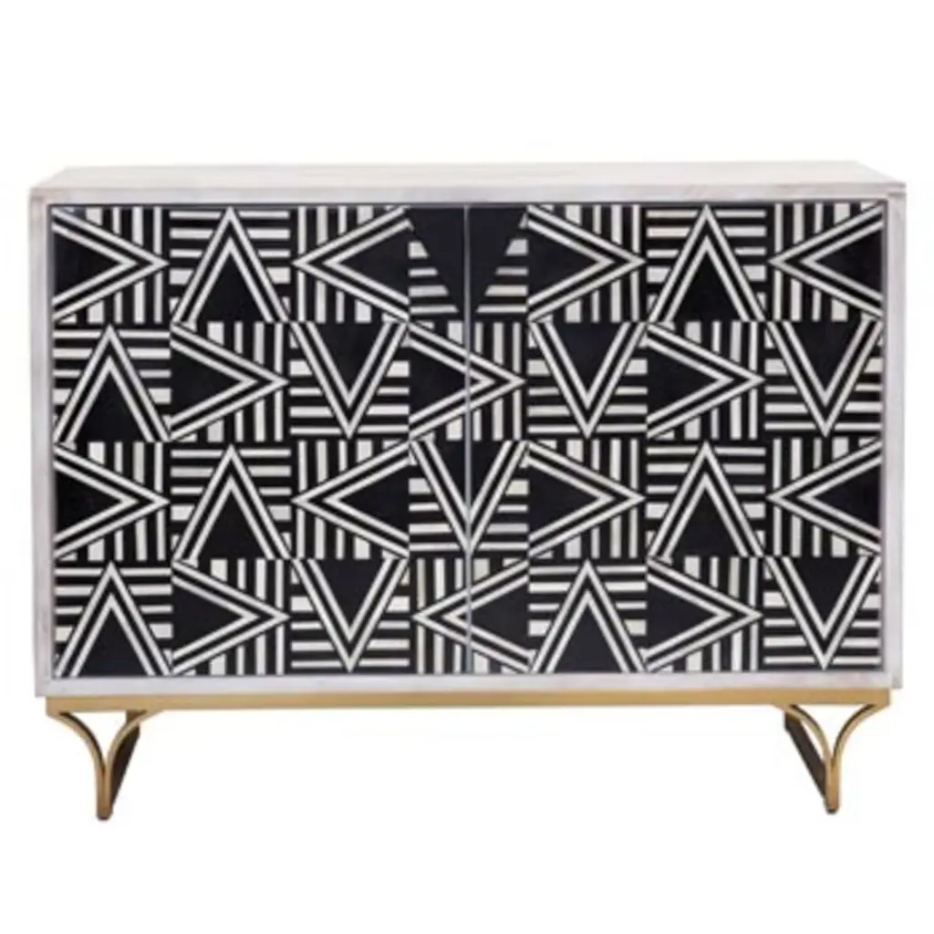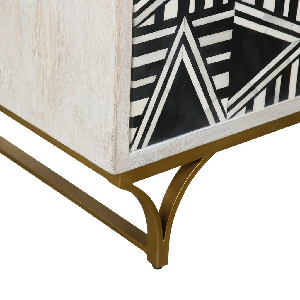 Lee Bone Inlay Bar Cabinet, Black/white/white Wash