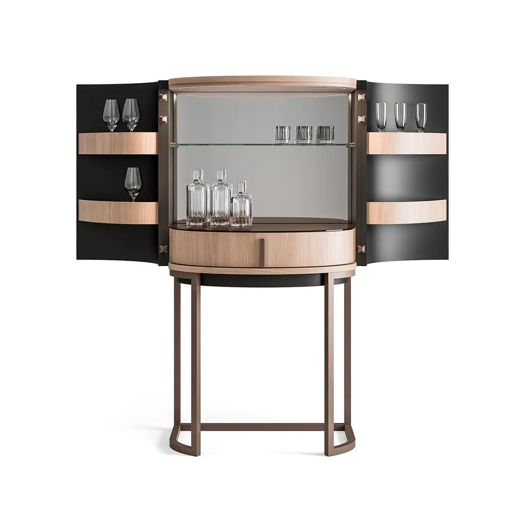 Light Walnut Curved Bar Cabinet