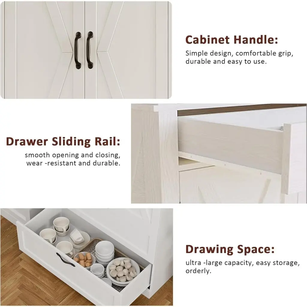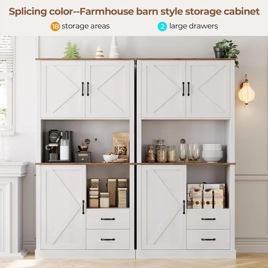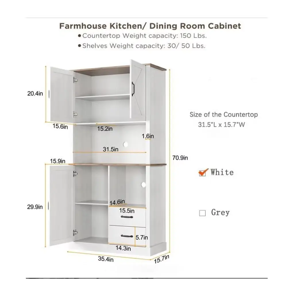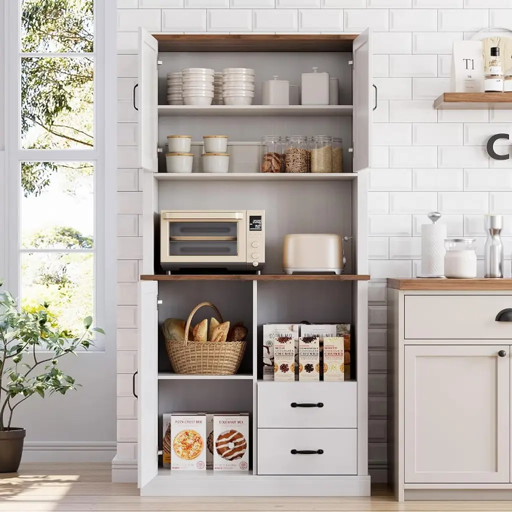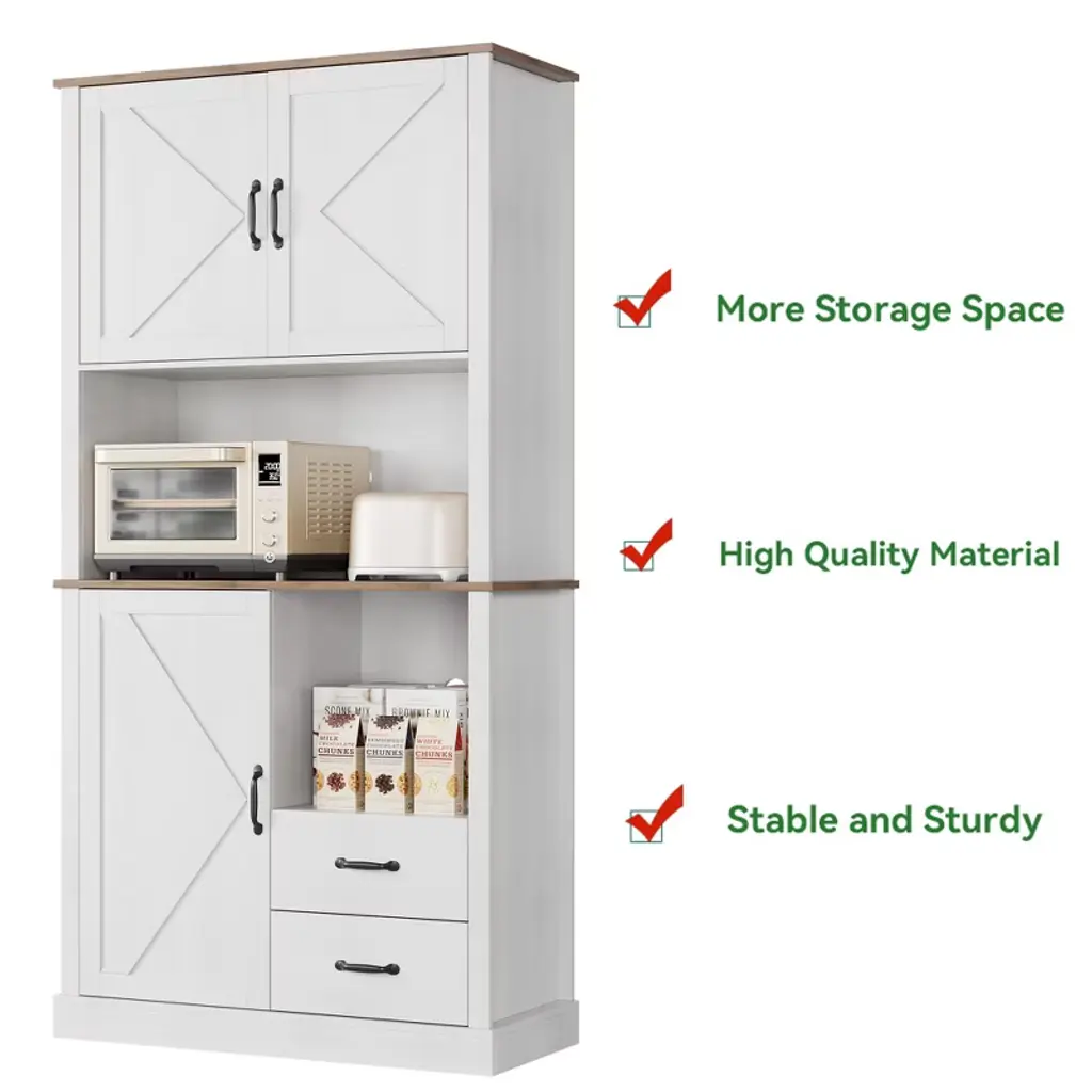Modern Kitchen Pantry Cabinet With Microwave Stand, 71 Inch Tall Hutch Bar Cabinet With 2 Drawers