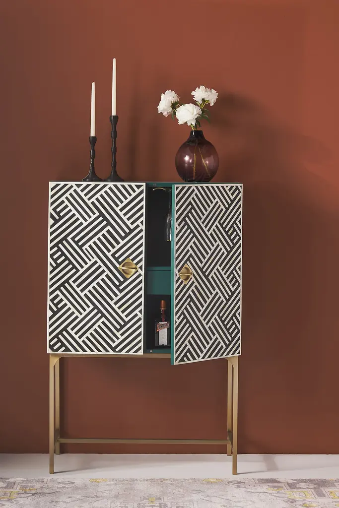 Optical Inlay Bar Cabinet