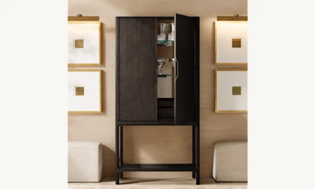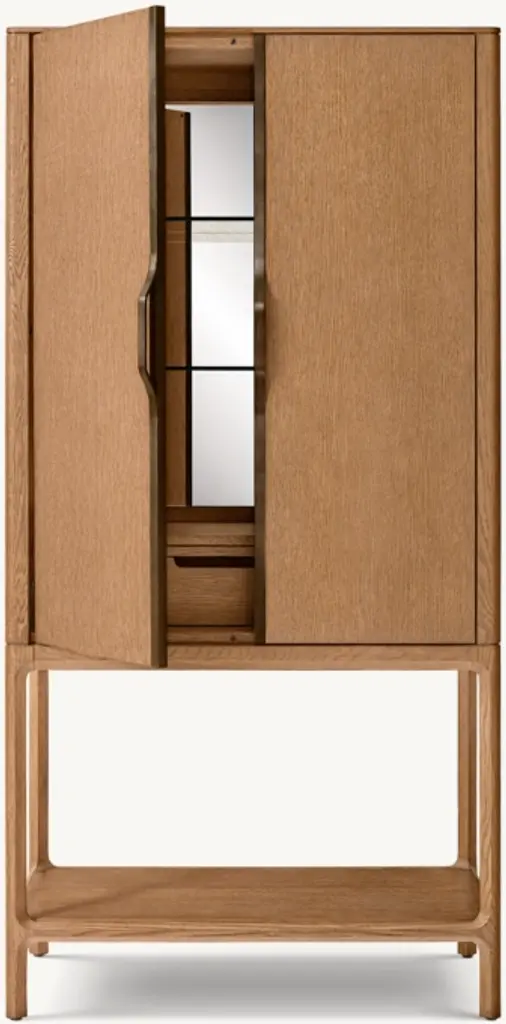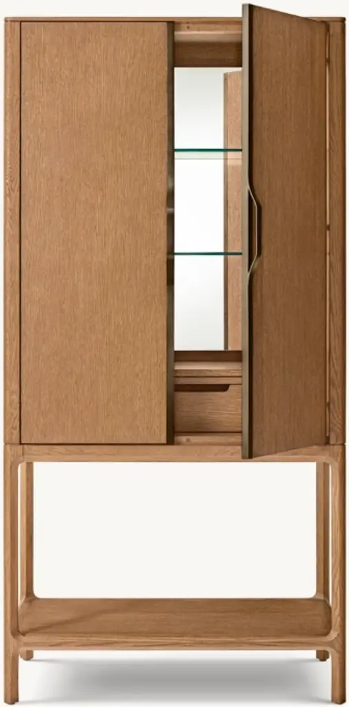 Exquisite workmanship and refined restraint characterize our collection by the Van Thiels. Spare and sculptural, each geometric form is simplified to its functional essence – a harmonious interplay of straight lines and gently rounded corners. Slender, sinuous metal hardware provides an elegant counterpoint to the warmth of richly grained American oak veneers. SHOP THE ENTIRE COLLECTION