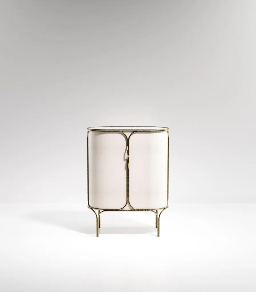 Parchment Bar Cabinet With Bronze-Patina Brass Details By R&y Augousti