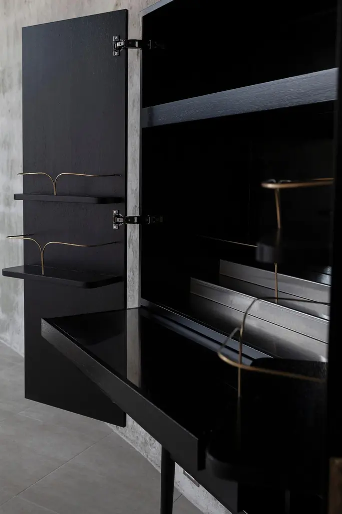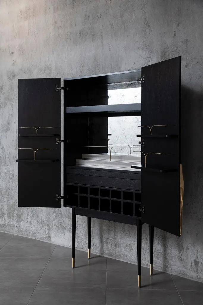 Perfidia_01 Bar Cabinet In Solid Wood And Casted Bronze Details By Andean