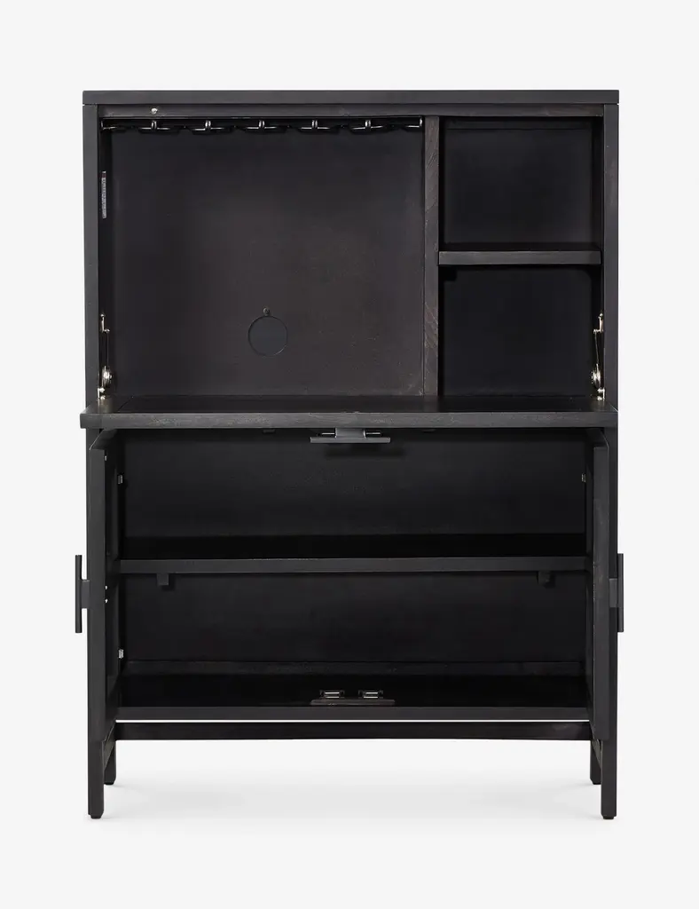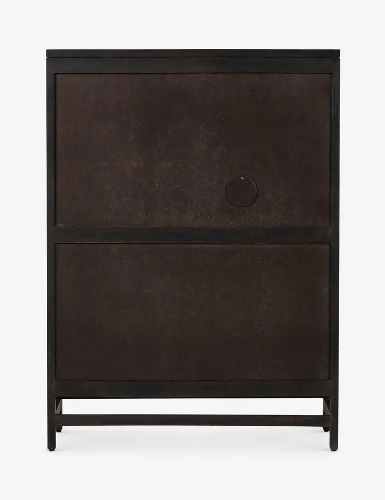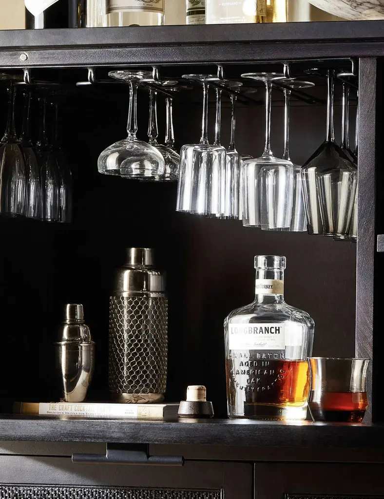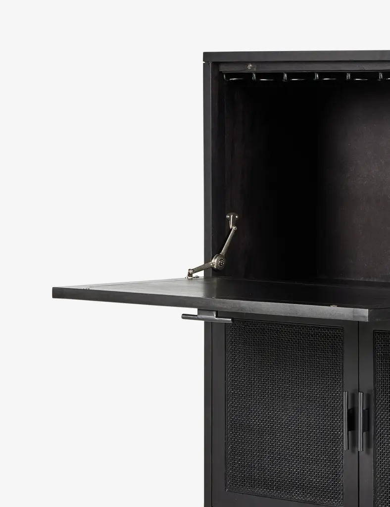 This bar cabinet is crafted from solid mango wood and woven cane paneling then finished with iron hardware for a sleek touch. A spacious interior provides storage for stemware and all your cocktail essentials, while the drop-down front makes the perfect surface for mixing. We love this piece as a chic addition for entertaining.