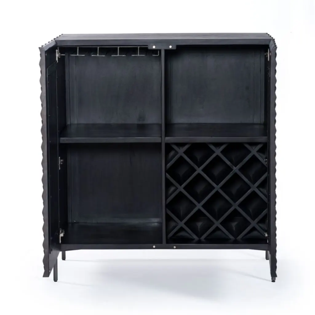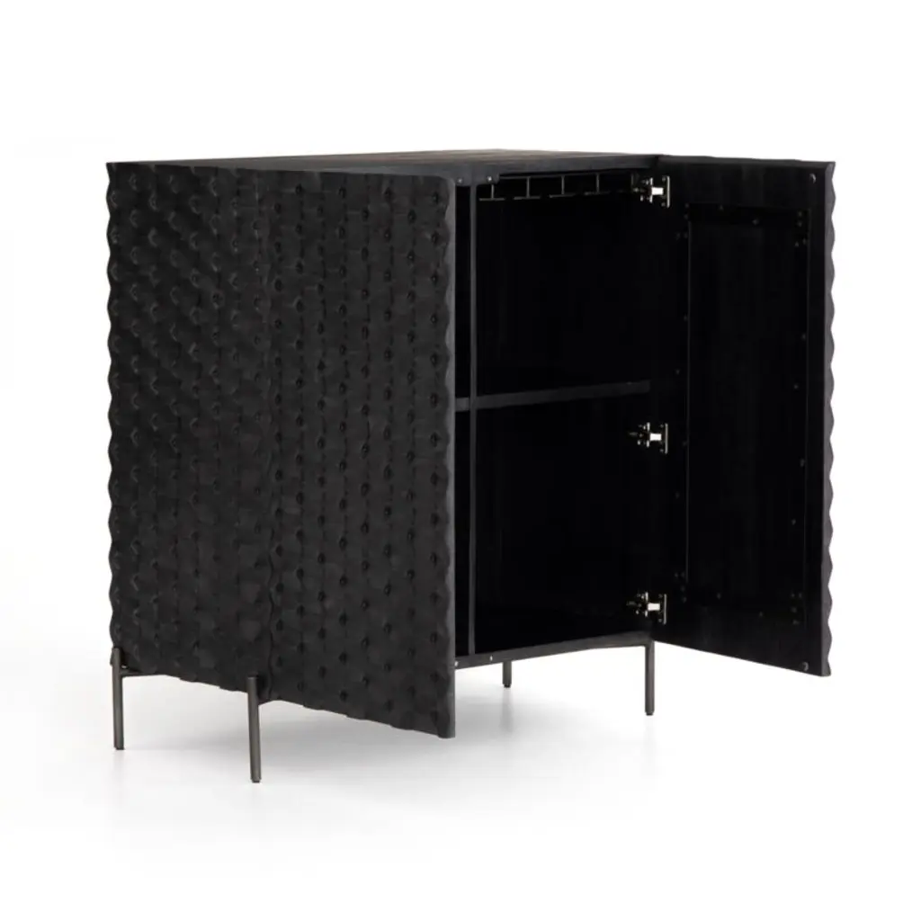 Raffael Black Carved Wood Bar Cabinet With Storage