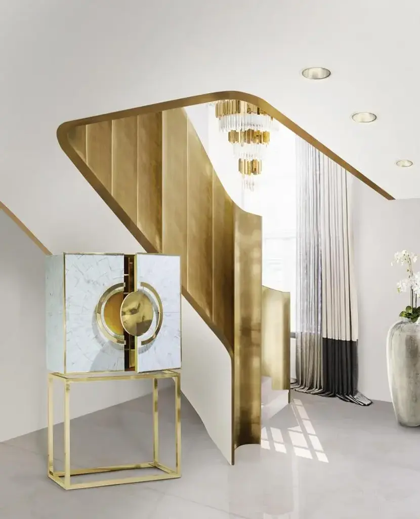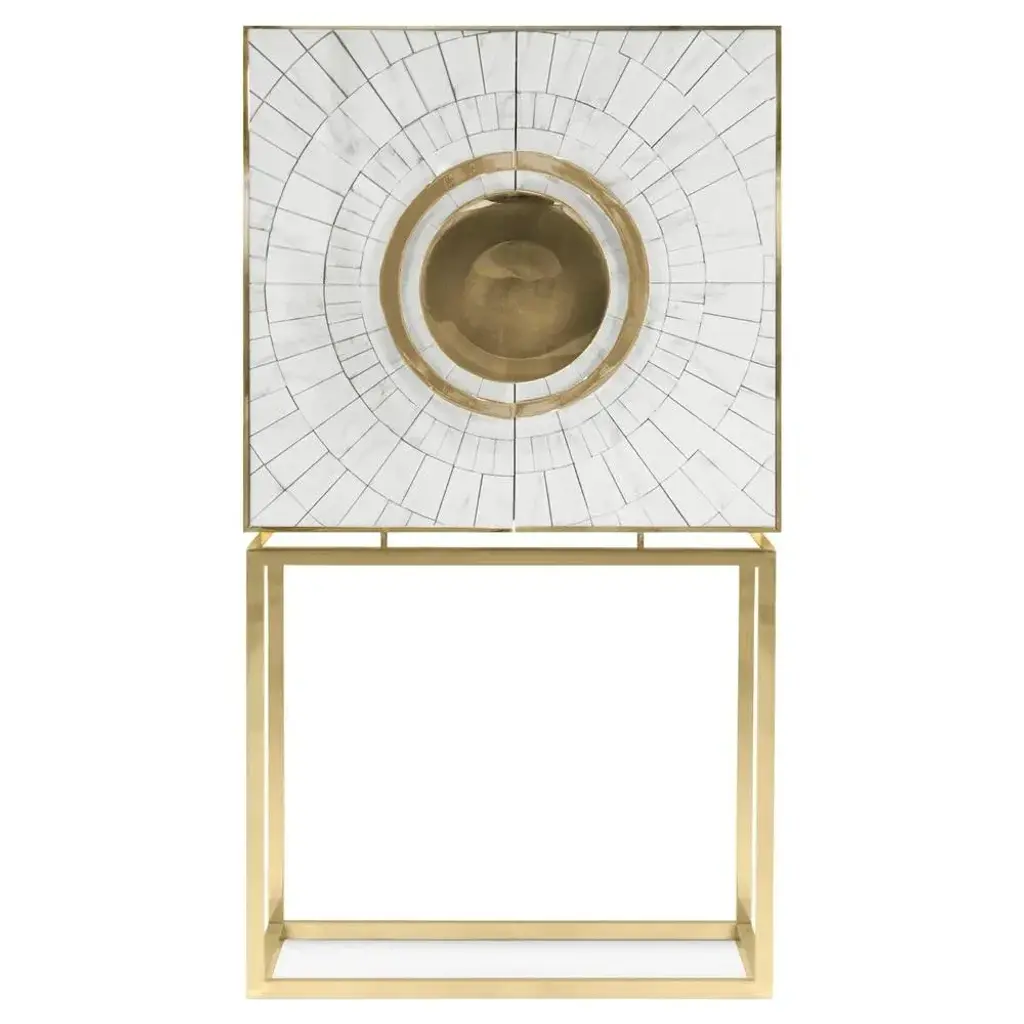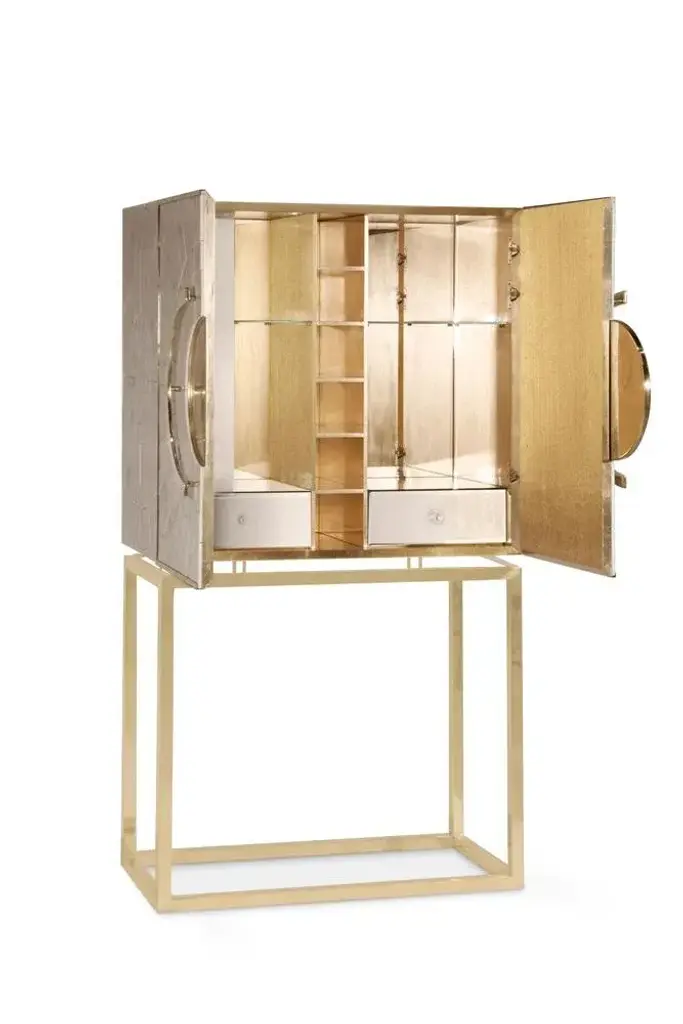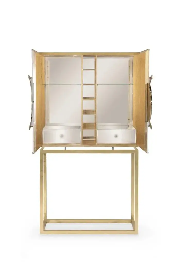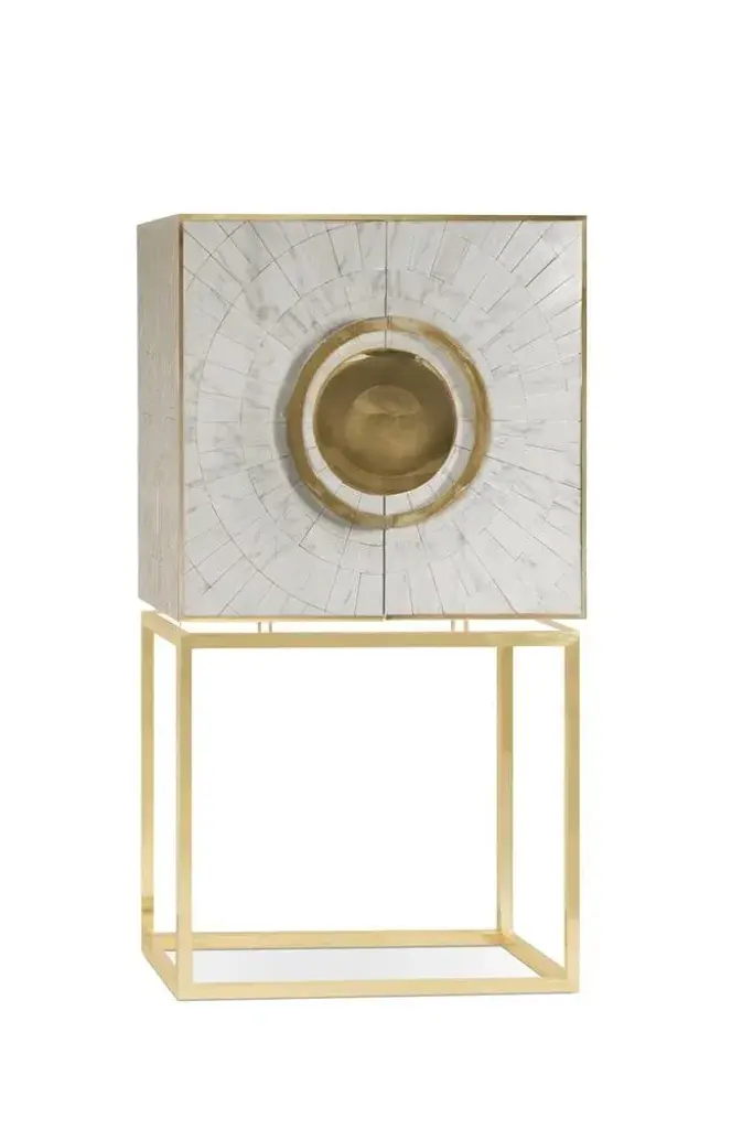 Secret bar cabinet by memoir essence dimensions: d 50 x w 90 x h 165 cm. Materials: brushed brass, gold leaf and white marble. Also available in brushed brass and polished stainless steel. Please contact us. With a sophisticated and timeless personality, secret is the result of the involvement of white handcrafted marble into individual pieces arranged radially. The piece is based on a gilded brass base, promoting its strength, elegance and stability. Its interior is covered with gold leaf and handmade process that enriches this piece. Memoir essence interiors has been writing its memoirs day by day, inspired in every detail lived through a feminine world, this world brings the most delicate imaginary. Jewelry, fashion, architecture, music, art and materials are memoir’s inspirations to materialize a collection of design pieces of furniture, upholstery, lighting and accessories. The use of noble materials like marble, brass, veneers, gold and silver leaf, swarovski crystals as other decorative and fine materials, combined with handwork techniques as casted brass, hand-whickered fabric ribbons, gold leaf appliance, marble cutted and puzzled pieces, provide the needed essence to tell memoirs through the designed pieces and the interiors they fulfill. This collection mostly handmade and focused on details and material nobility is made in portugal, bringing handwork techniques that are part of portuguese history, applied in a current and differentiated way, delivering timeless pieces to your special projects. Acquire memoir is the opportunity to travel through the feminine essence over design and experience a unique “memoir” of timelessness and exclusivity. Writing is first chapter in 2016, after a journey of inspirational research, forecasting and design, memoir made its first appearance at maison et objet, paris. Since then memoir is “writing” memories adding new materials, designs, techniques and appearances around the world, as in paris, london or uae. Memoir will continue this journey, always motivated by the inspiration possibilities in the many delicate details found in feminine world. Tell your memoires with this collection and be a memorialist yourself…