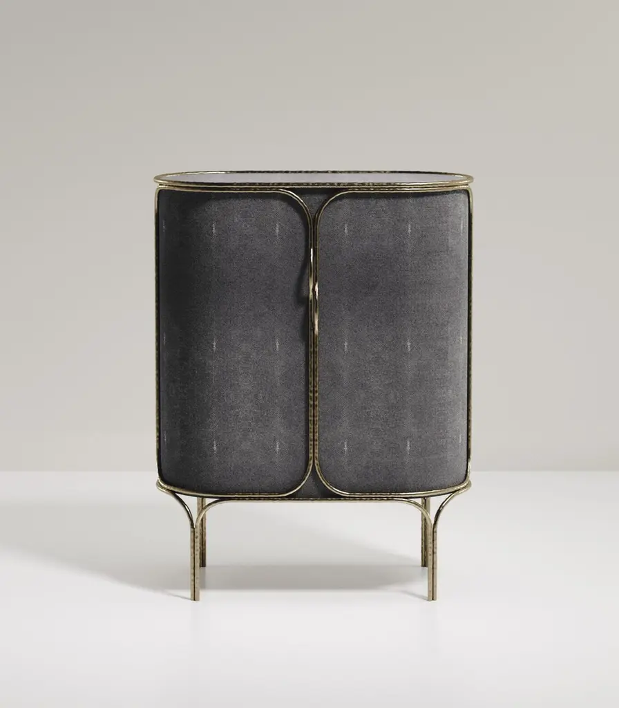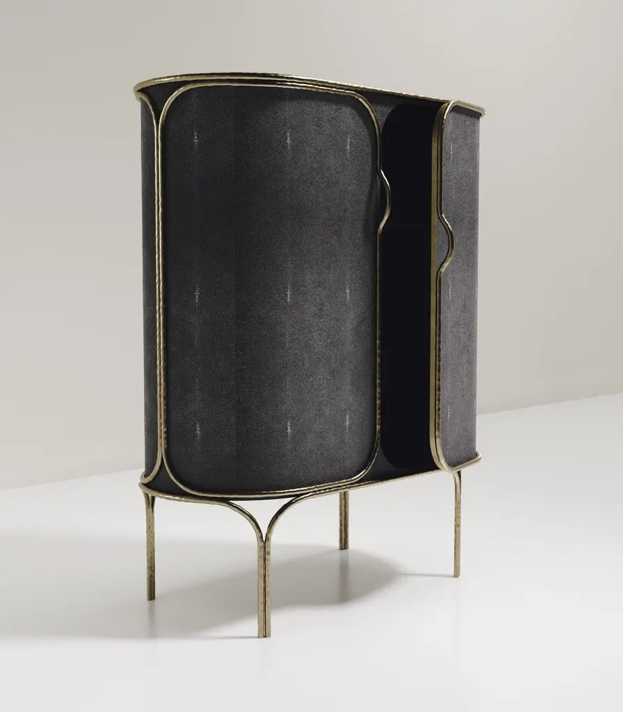 Shagreen Bar Cabinet With Bronze-Patina Brass Details By R&y Augousti