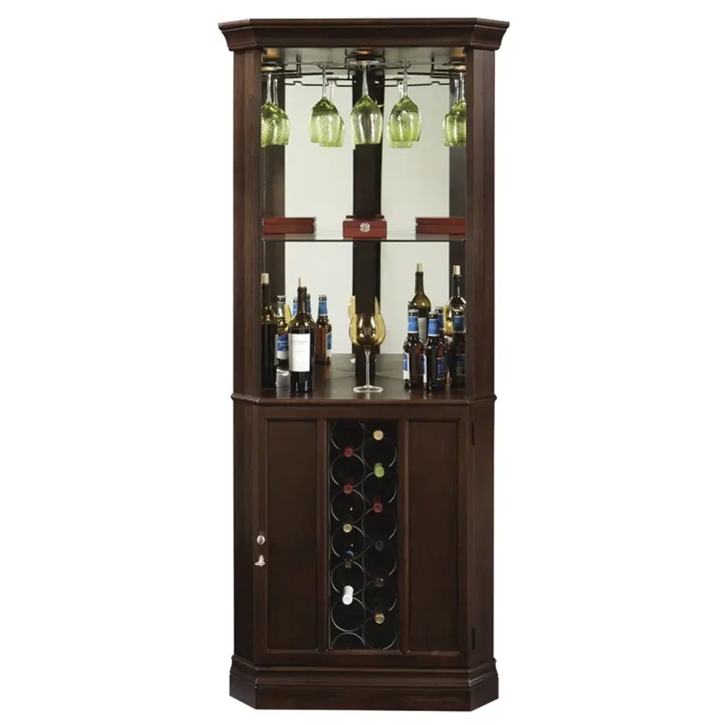 This traditionally styled Wine and Bar cabinet combines plentiful storage with a convenient space-saving corner design.