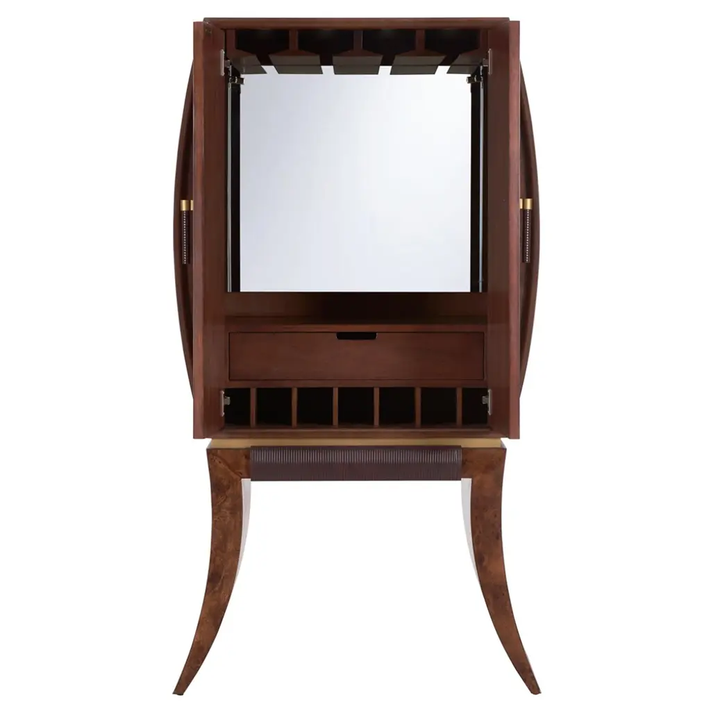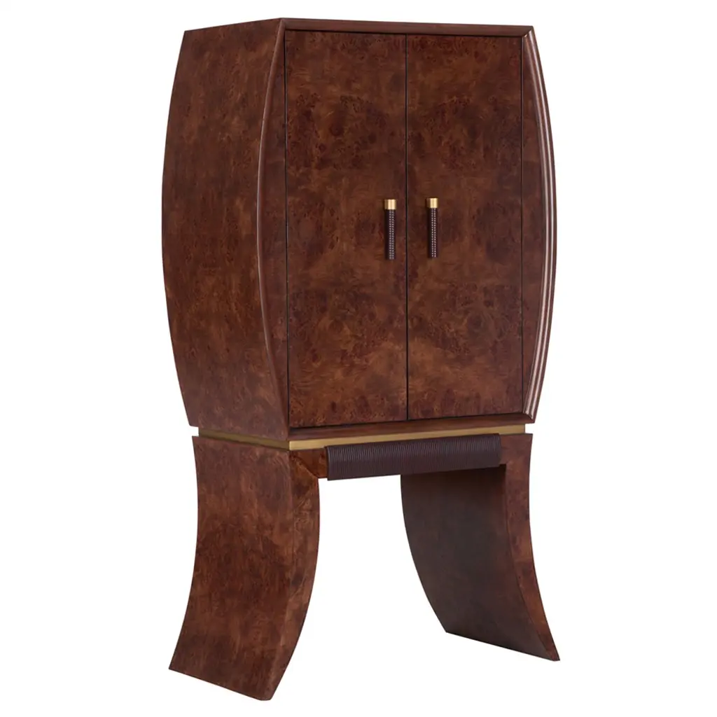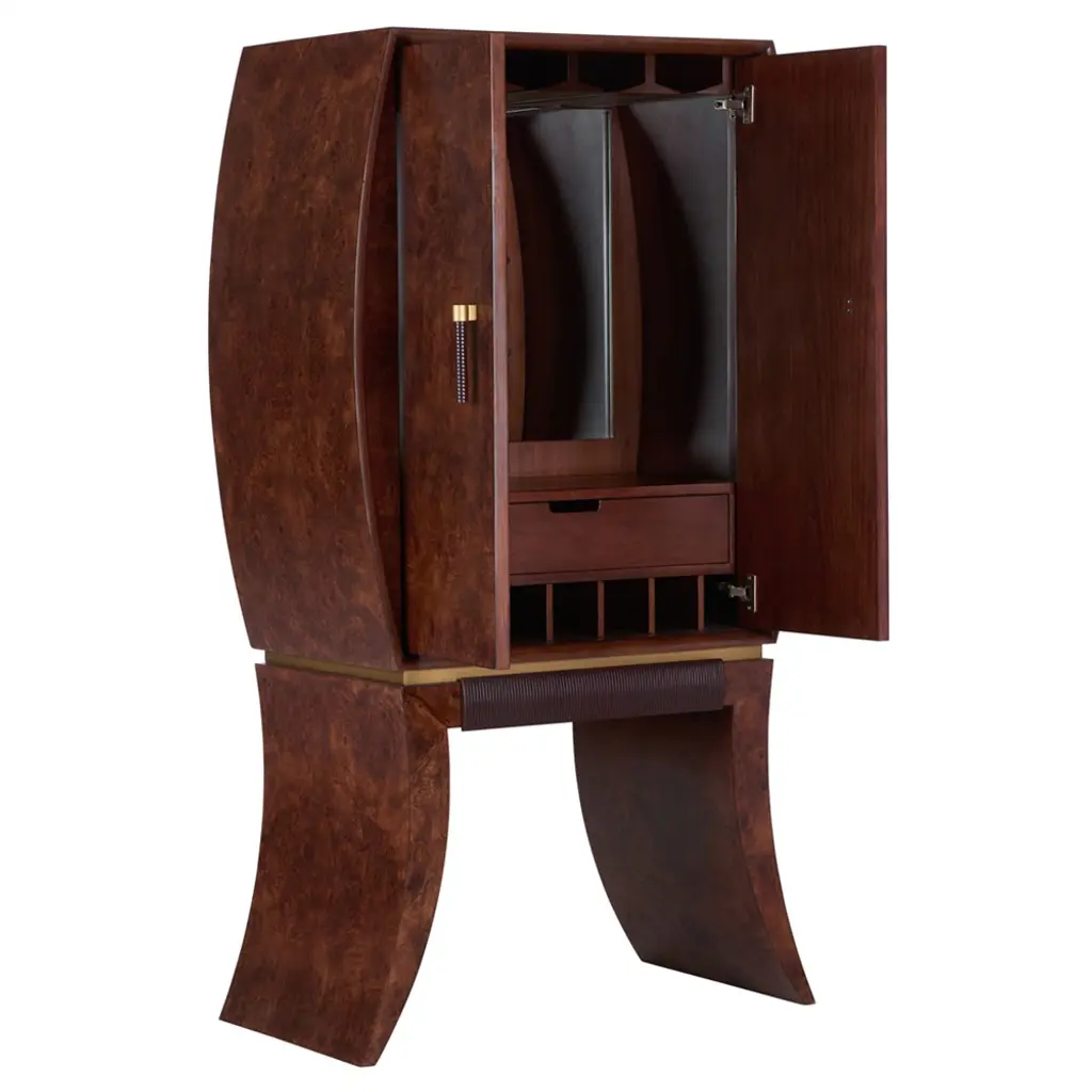 Varuna Updated Traditional Brown Burl Bar Cabinet