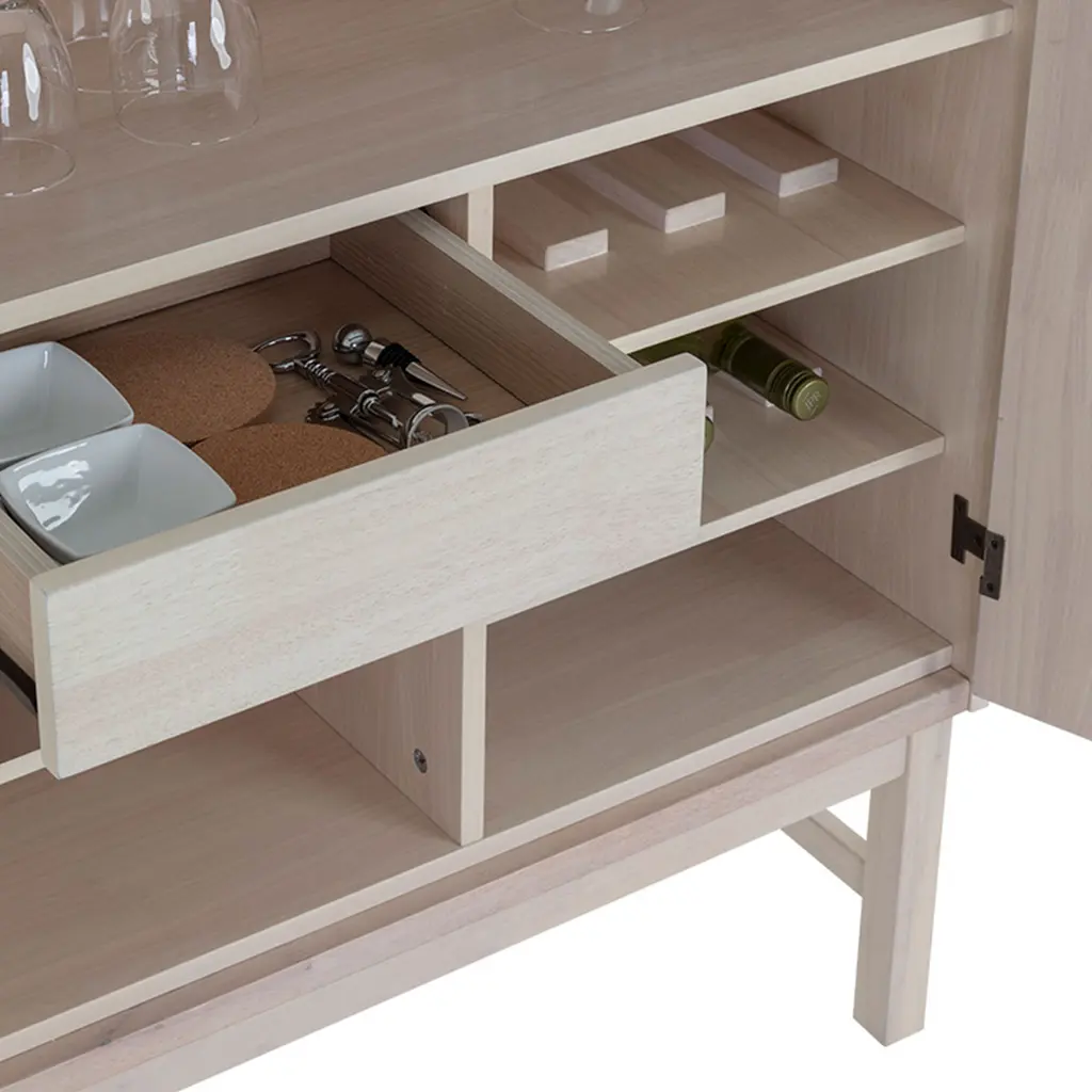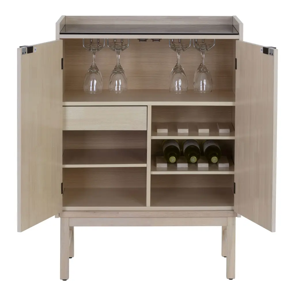 With a neat footprint and an elegant mid-century profile, the Vintners bar cabinet makes a stylish addition to your living space. Choose from three modern finishes, all with chic matte-black metal hardware. Inside, store glasses, wine bottles and a range of other drinkware in an organized arrangement of racks, compartments, shelves and more. The tempered-glass top is the perfect place for preparing drinks and serving guests.
