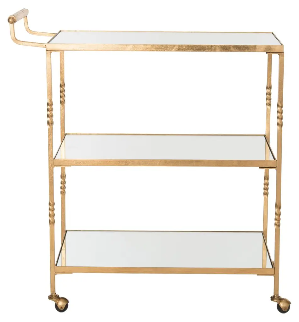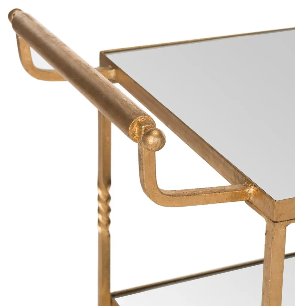 Entertain in chic style with this stylish bar cart. Featuring mirrored glass shelves and steering handles, this elegant trolley on casters is crafted of sturdy iron with a lustrous finish.