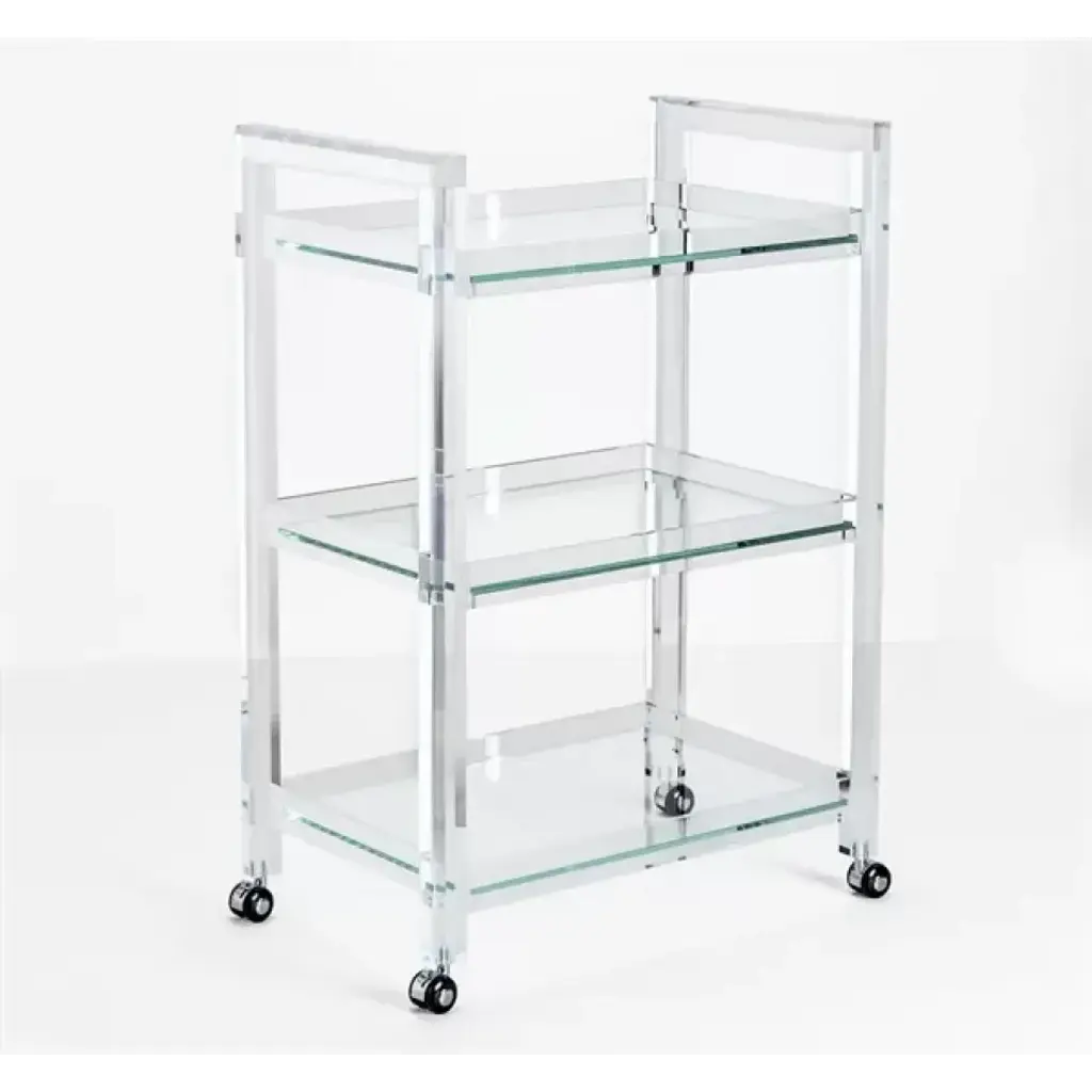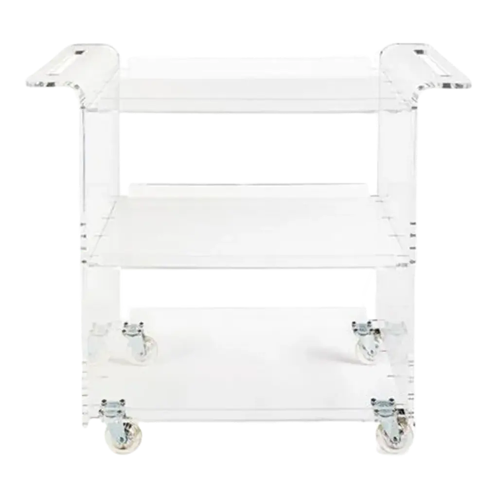 Setting the tone for the party, the acrylic and glass Ava Bar Cart pairs clean, simple lines with a fresh, mod vibe.