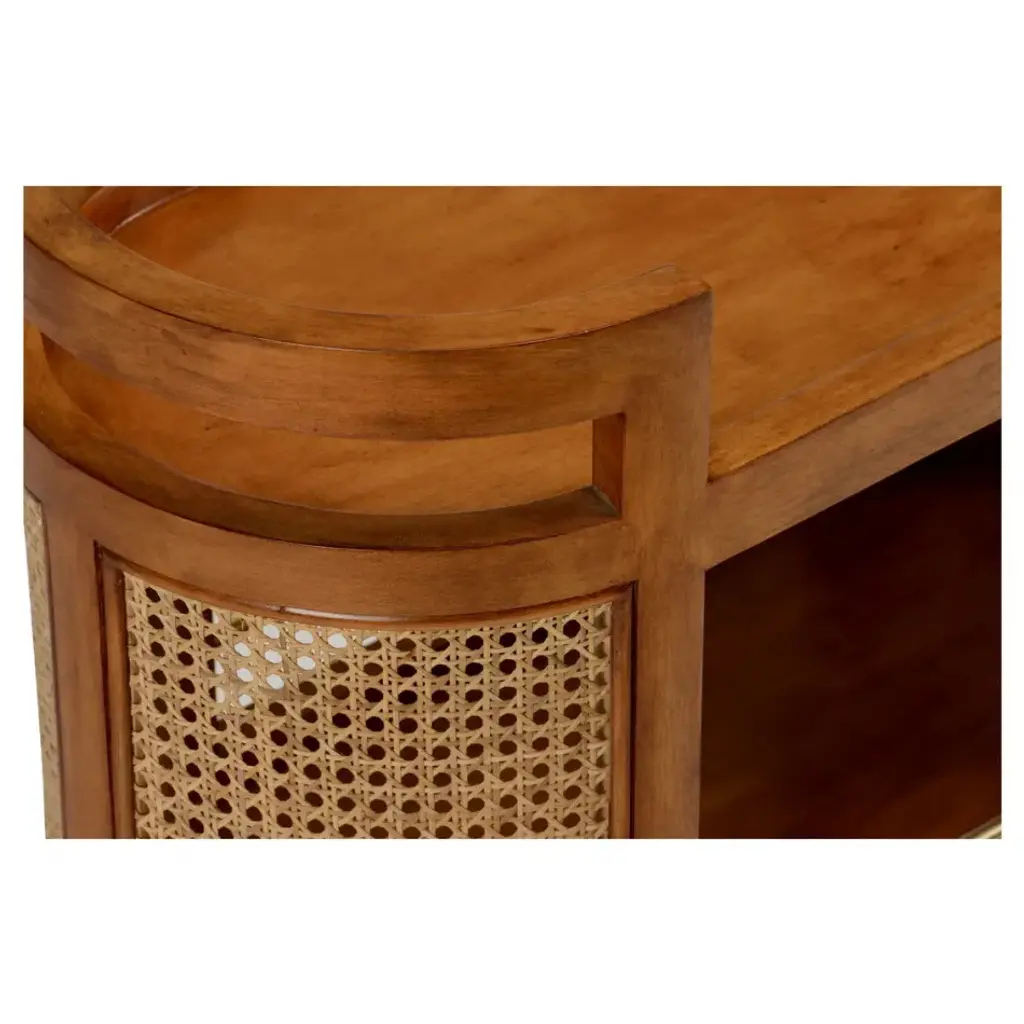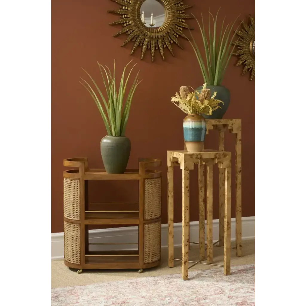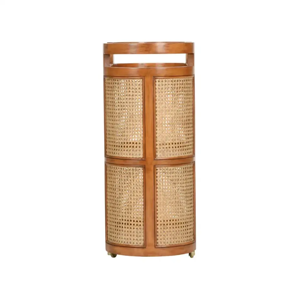 The Berkshire Bar Cart features a sleek maple veneer construction that adds a touch of sophistication to any room. Adding a touch of texture and visual interest, the sides of the bar cart are adorned with cane siding. The rich tones and smooth finish of the veneer provide a beautiful backdrop for showcasing your favorite beverages and barware.
