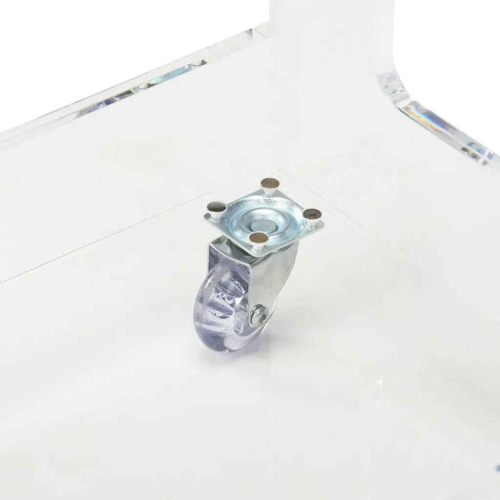Sleek and simple design with clear acrylic material and chrome wheels make this bar cart perfect for any space. With mobility to easily move from room to room, it's perfect for entertaining!
