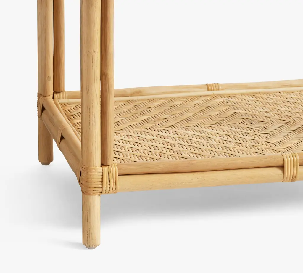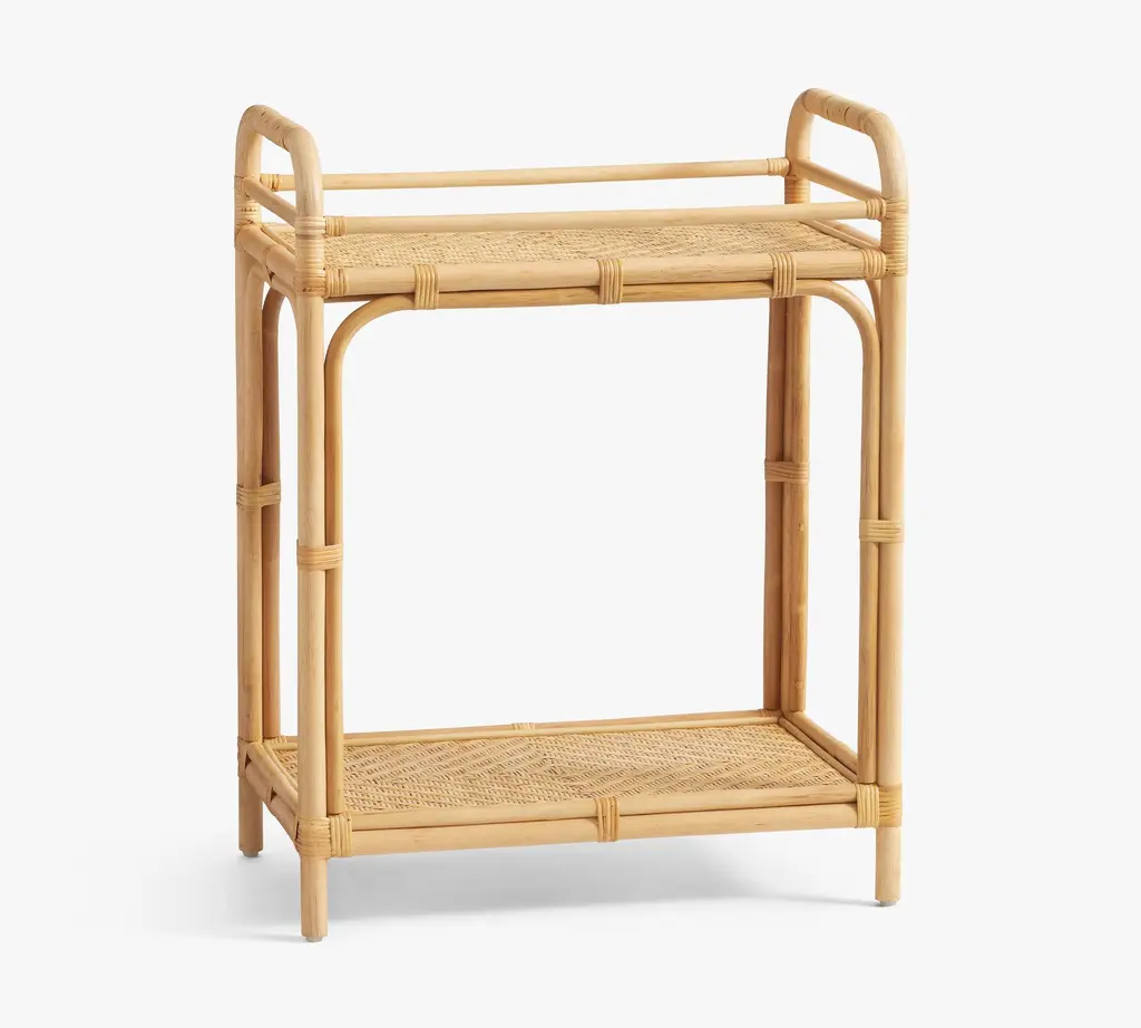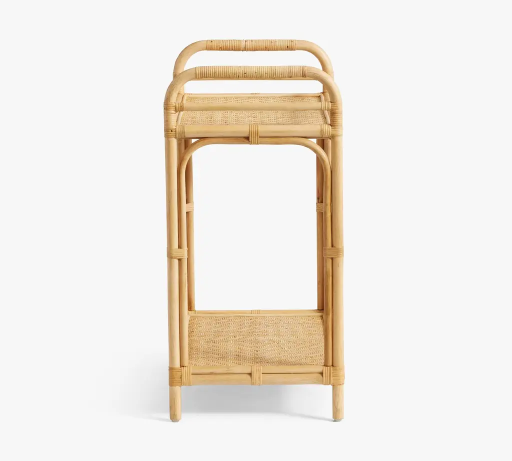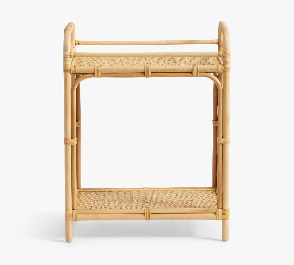 Looking equally at home in a breakfast nook as it does a grand dining room, our bar cart has a versatile design that we love. Natural rattan is handwoven around a metal frame for an artisan touch.