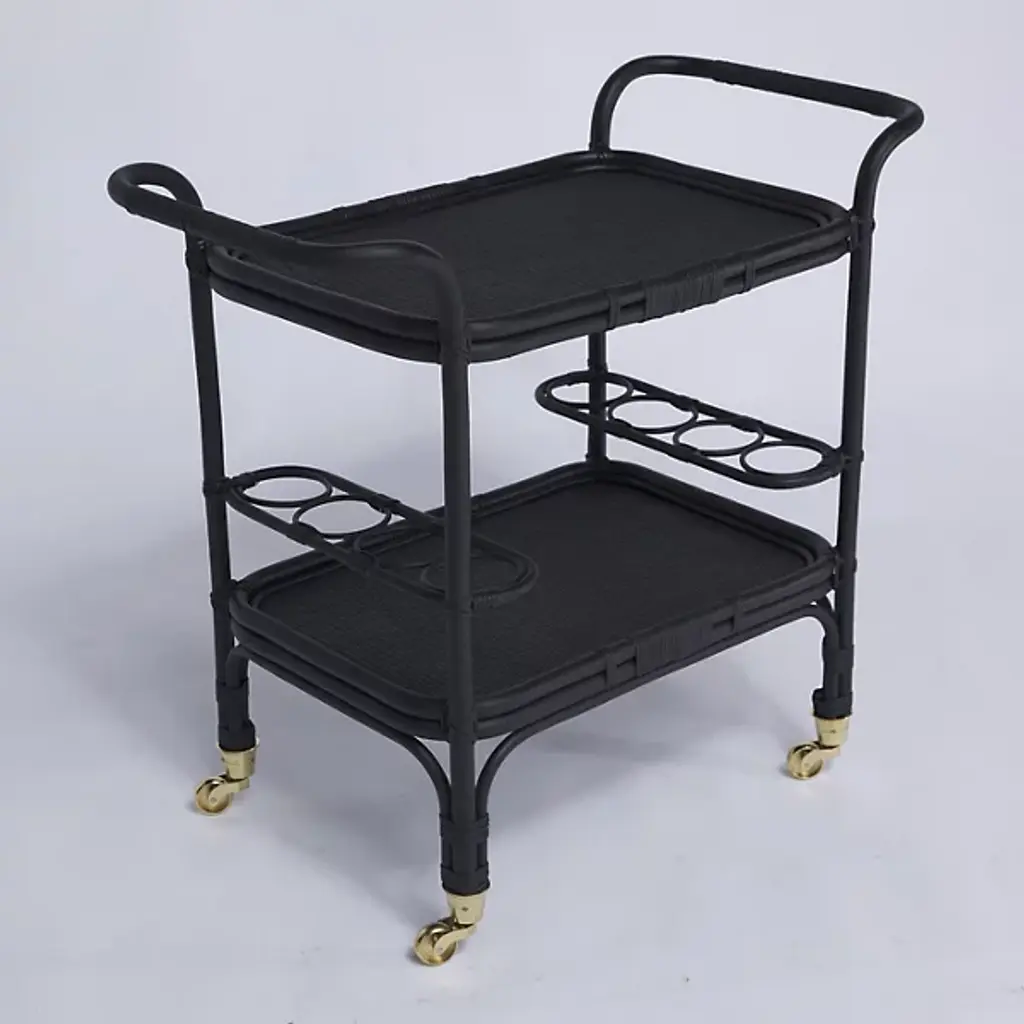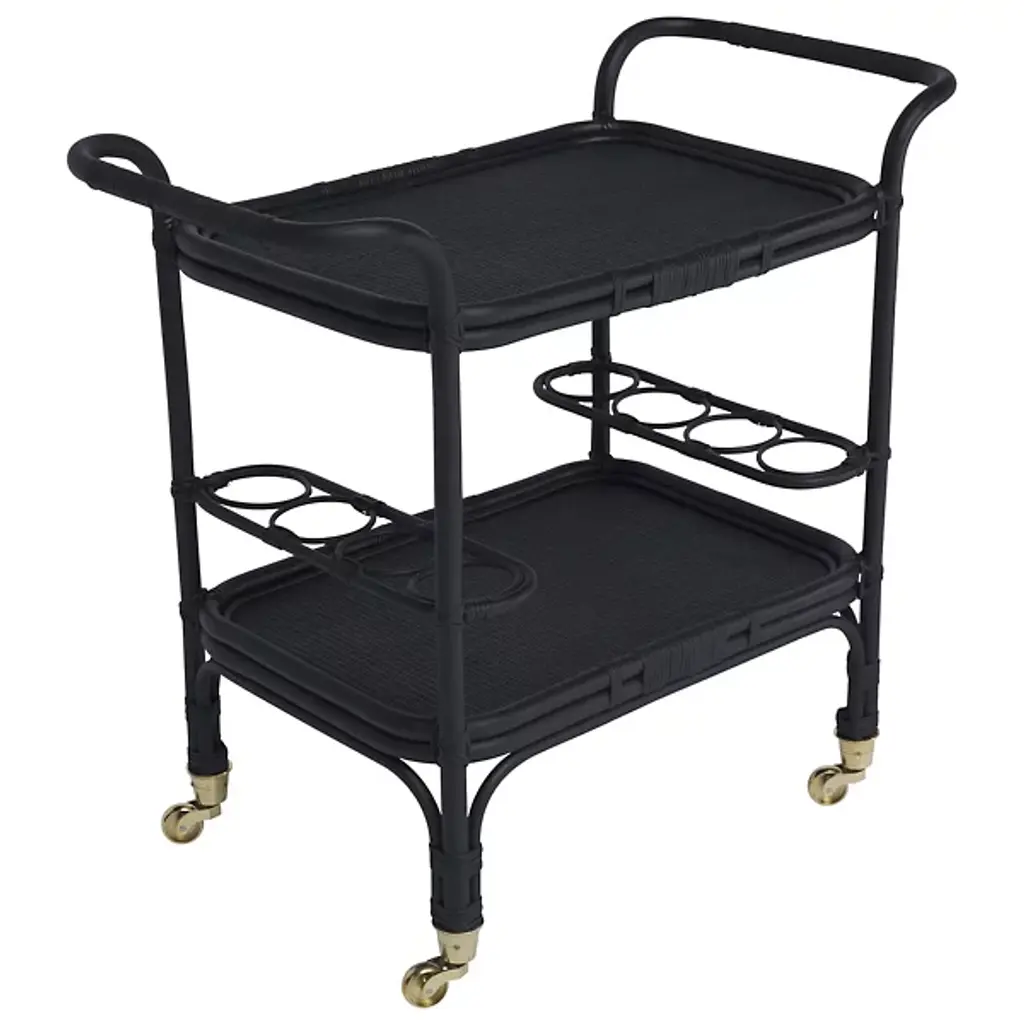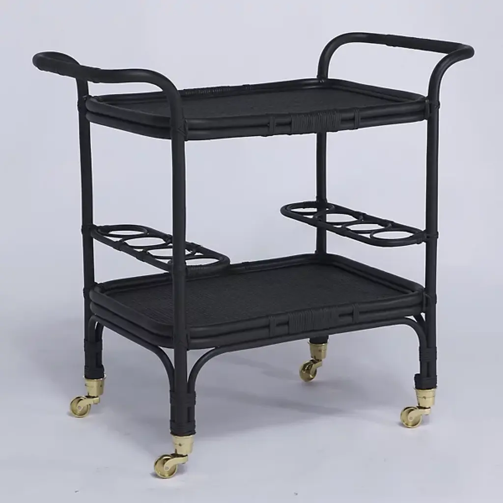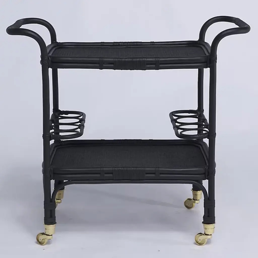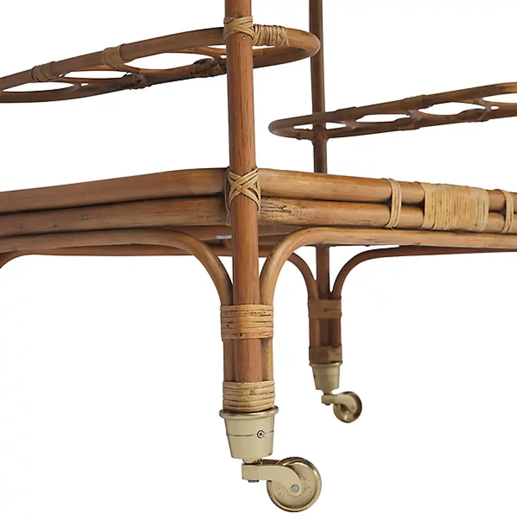 The Carlo Outdoor Bar Cart by Sika Design channels the charm of 1950s entertaining with a timeless midcentury design. Handcrafted from sustainably harvested rattan, it features two woven tiers with tempered glass inserts, elegant cane bottle racks, and curved trolley handles. Smooth caster wheels make it easy to move from room to room. Suitable for indoor use in kitchens, dining, or living areas, it’s a stylish, functional piece that brings a touch of vintage glamour to any gathering.
