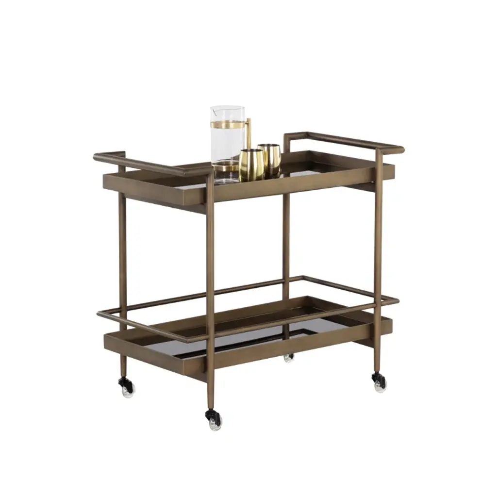 Industrial meets organic with the bar cart. Offering a youthful sensibility and simple aesthetic, the bar cart combines a black metal frame and casters with a stone inlay top and bottom shelf.