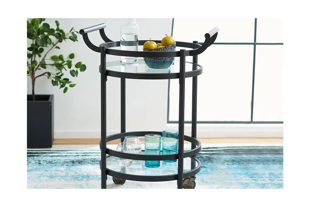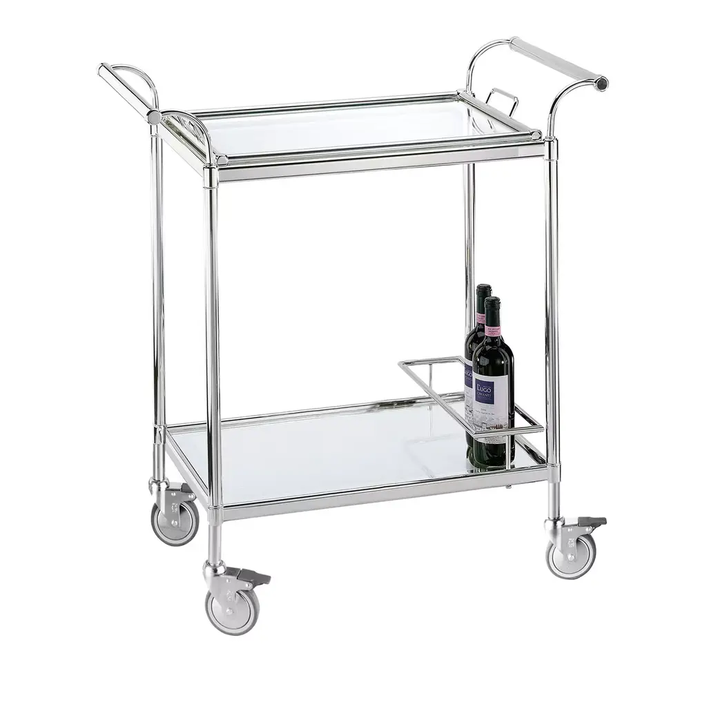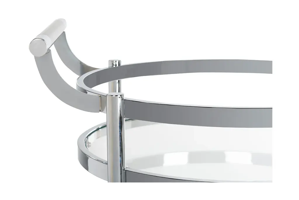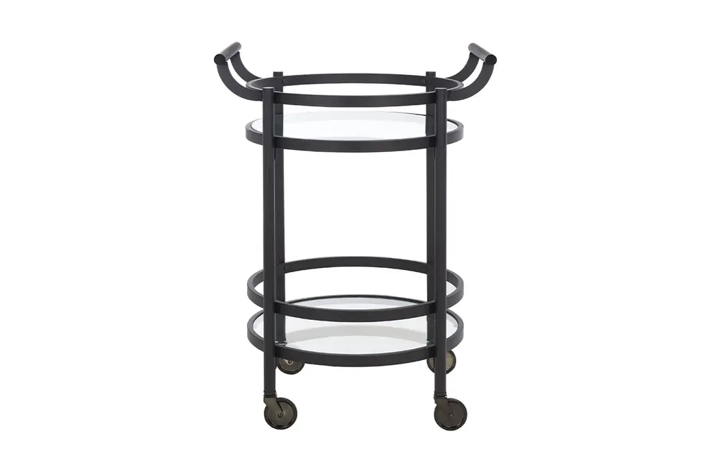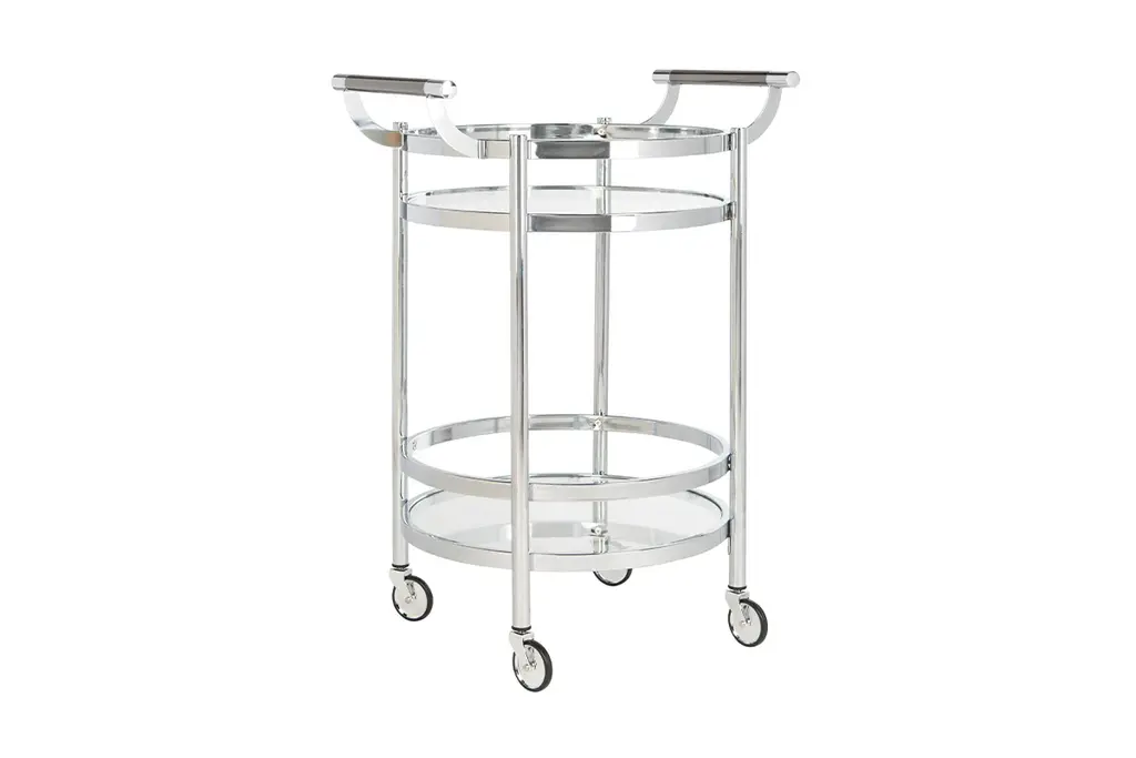 Designed with sleek, stylish curves, the Cosmo Bar Cart ensures easy entertaining in any room. Its two glass layers and shimmering gold finish create a stunning showcase for glasses and barware, making it a must-have for the modern host.