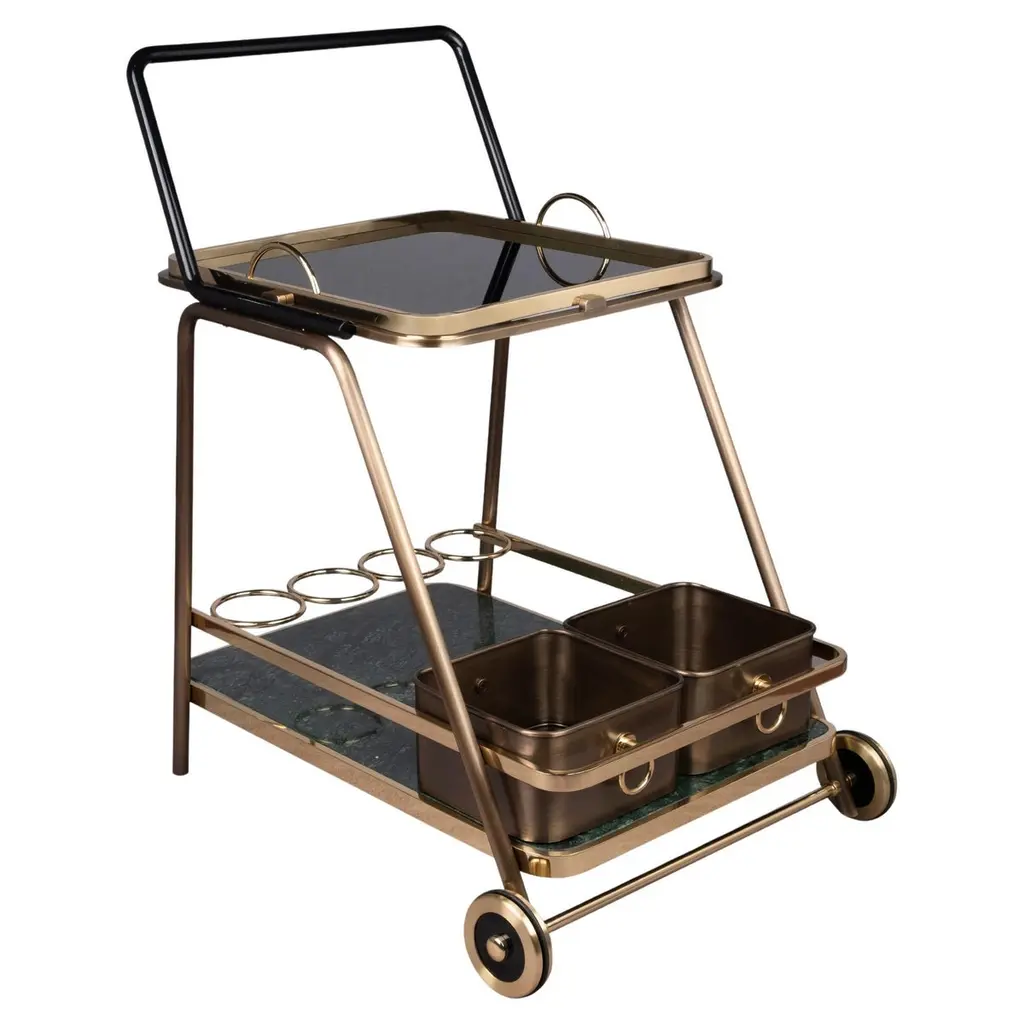 Still looking for a versatile yet sturdy rolling cart? This mobile kitchen cart is your perfect option. 2-tier open shelf provides you with ideal storage space for plenty of kitchen supplies. Additionally, supported by heavy-duty steel frame, the kitchen rolling cart is not easy to crack or shake. The curved handle is designed for pushing the cart conveniently. What's more, 4 smooth-rolling casters (2 of them are lockable) make it easier to move in your kitchen or dining room. Not only a kitchen storage cart, but also can be used as a bar serving cart or food cart, this utility cart is an ideal storage organizer for different places.FeaturesColor: Grey, Golden Material: Steel, MDF Overall Dimension: 16'' x 24'' x 32.5'' (L x W x H) Height from Each Shelf to Ground: 5'', 25'' Net Weight: 15 lbs Weight Capacity of Each Shelf: 22 lbs Package Includes: 1 x Kitchen Rolling Cart 1 x User Guide
