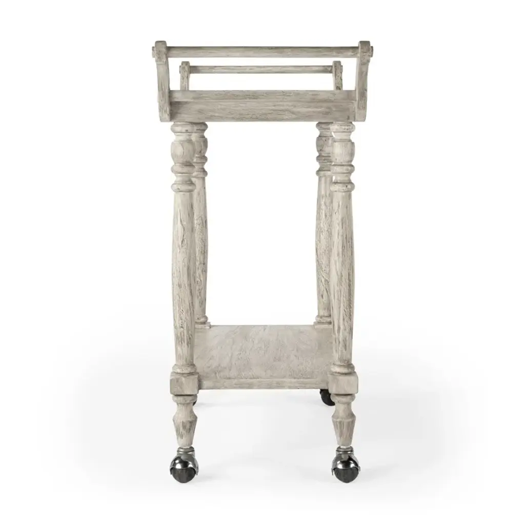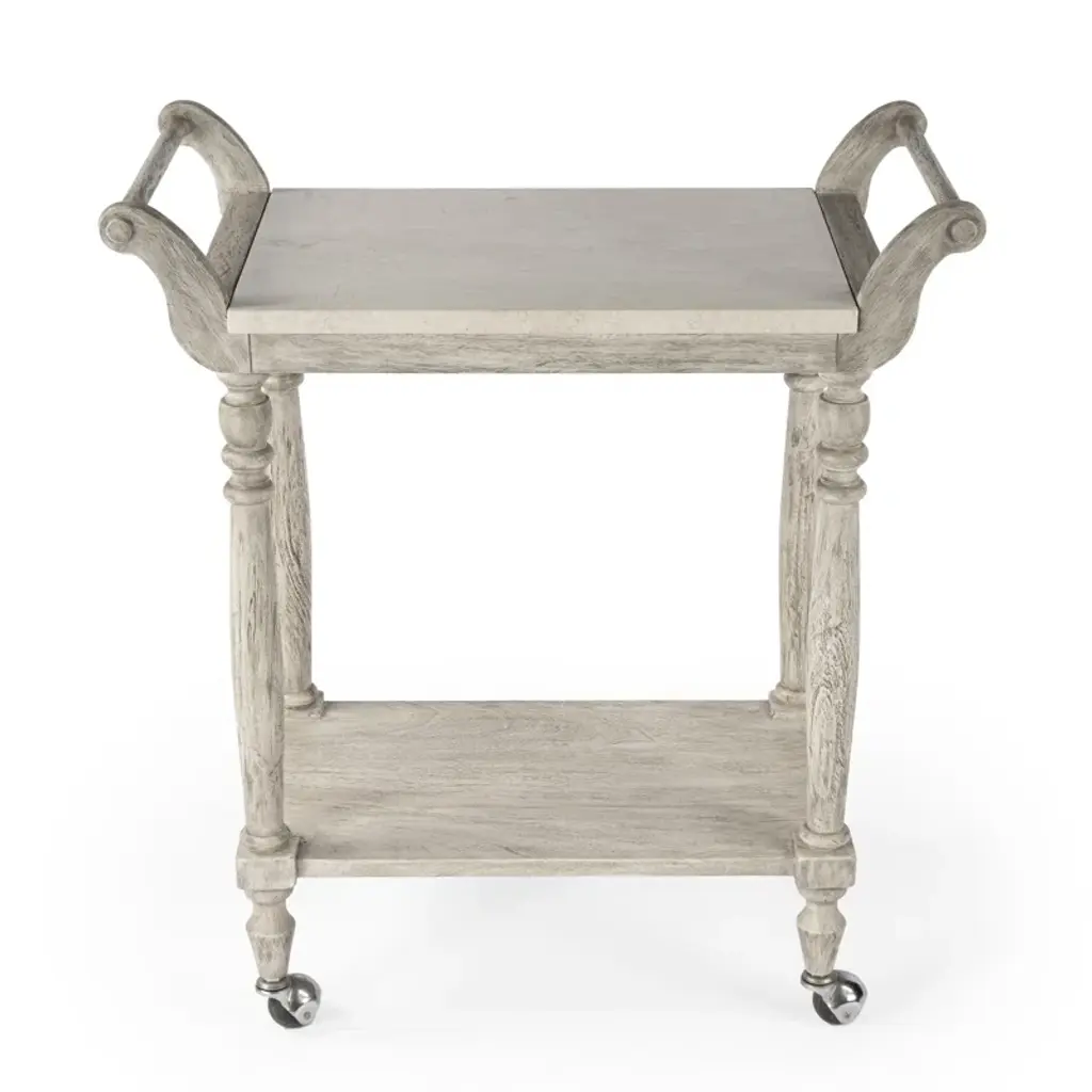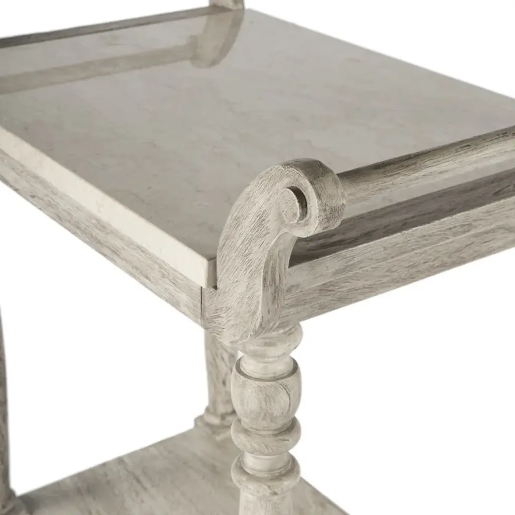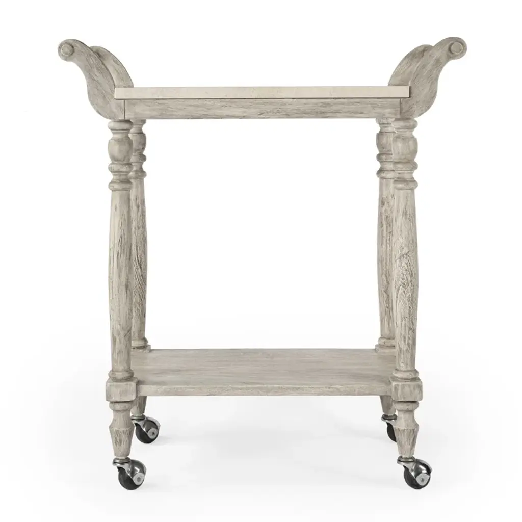 Ready to follow the party and be at the center of any gathering, this mobile serving cart will add coastal farmhouse charm to any kitchen, dining room, or living area in addition to satisfying your entertainment needs. Its sturdy frame, expertly crafted from wood solids, wood products, and veneer, is the foundation for an exquisite top. Its two-tier design provides ample space on top for serving food and drinks and there’s a convenient shelf below for added storage capacity.