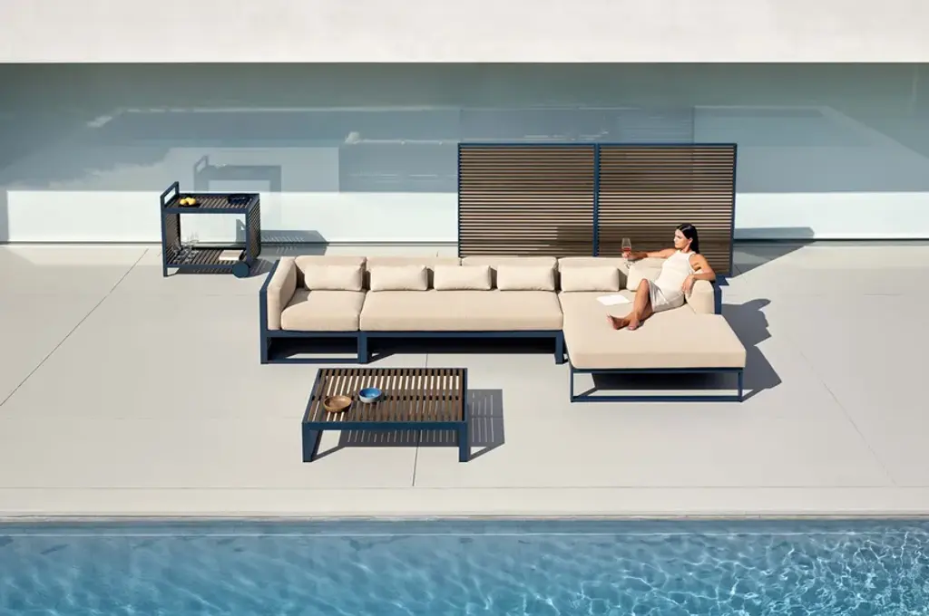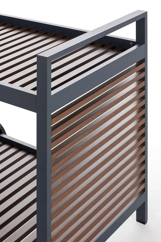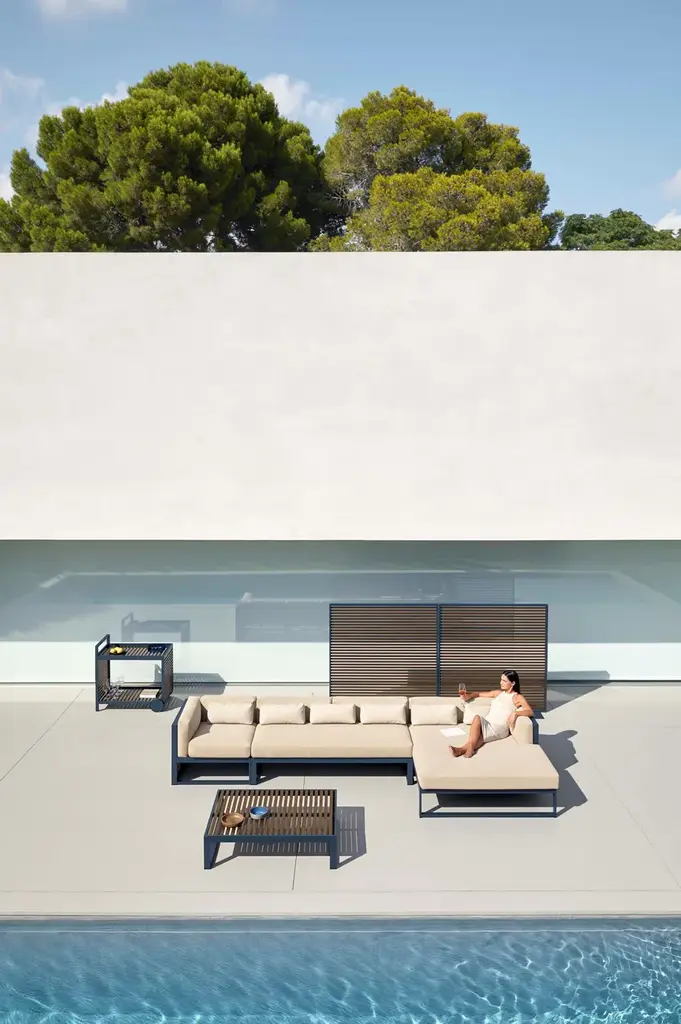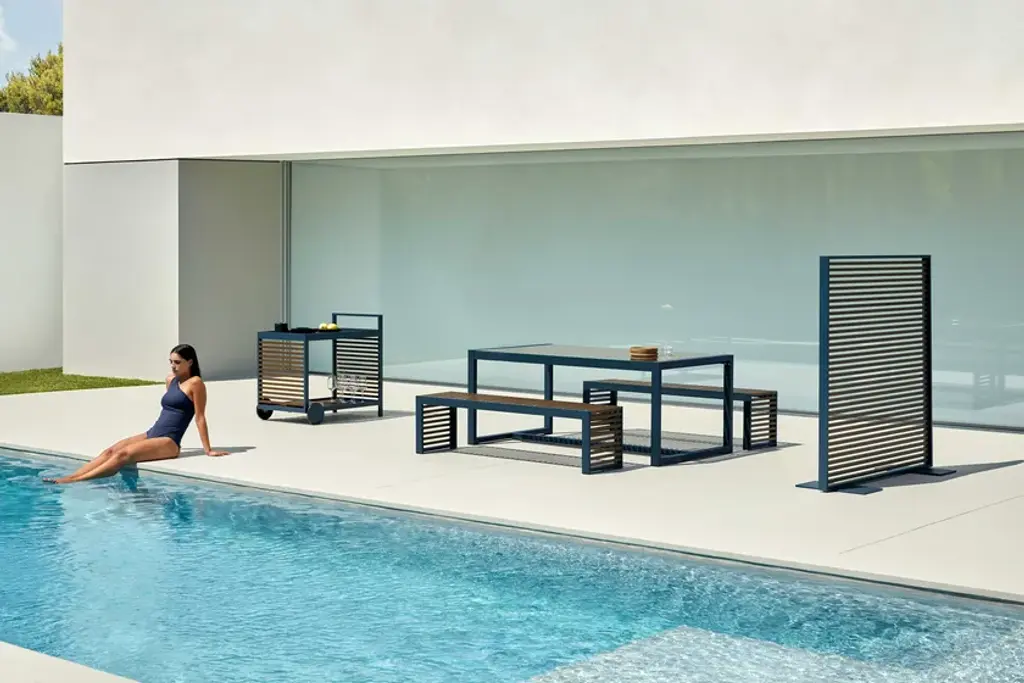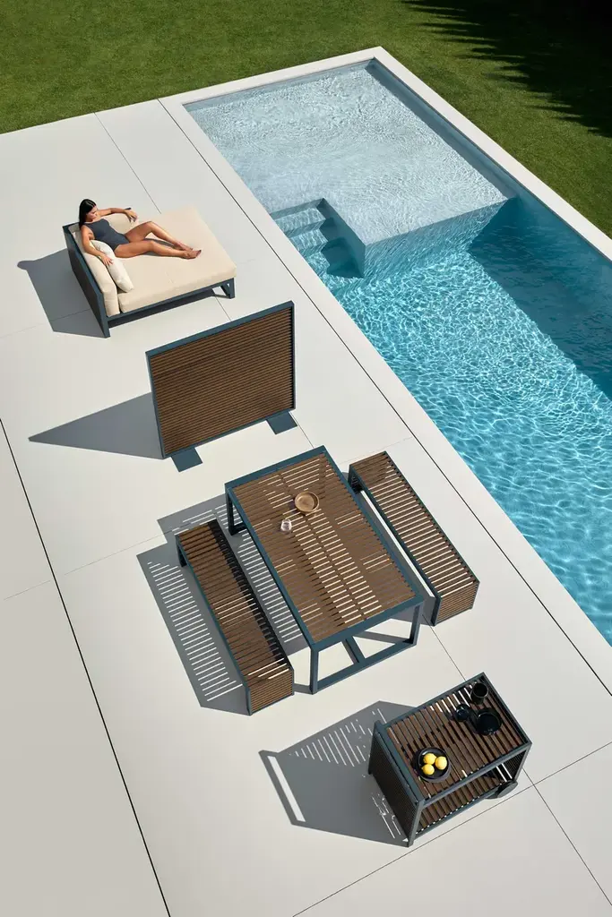 “I have always felt attracted by the patterns of light and shadows filtering through Mediterranean shutters, as well as by the work of certain architects from the Far East who work with wooden slats and bamboo cane. DNA is an outdoor furniture collection that reinterprets the essence of these horizontal shapes.”José A. Gandía-BlascoDNA is a collection of outdoor furniture inspired by the subtle play of the modulations of light and shadows filtering through Mediterranean shutters and it praises the shadows of Japanese aesthetics in traditional and contemporary architecture – the positive and the negative dispossessing any superfluous adornment.Made of anodized or thermo-lacquered aluminium profiles. Polyurethane foam rubber covered with water-repellent fabric. Removable fabric cover.Collections colour sample: anodized, white, agate grey, cement grey, sand, bronze, wine red, blue grey, grey blue, signal grey, anthracite and black.