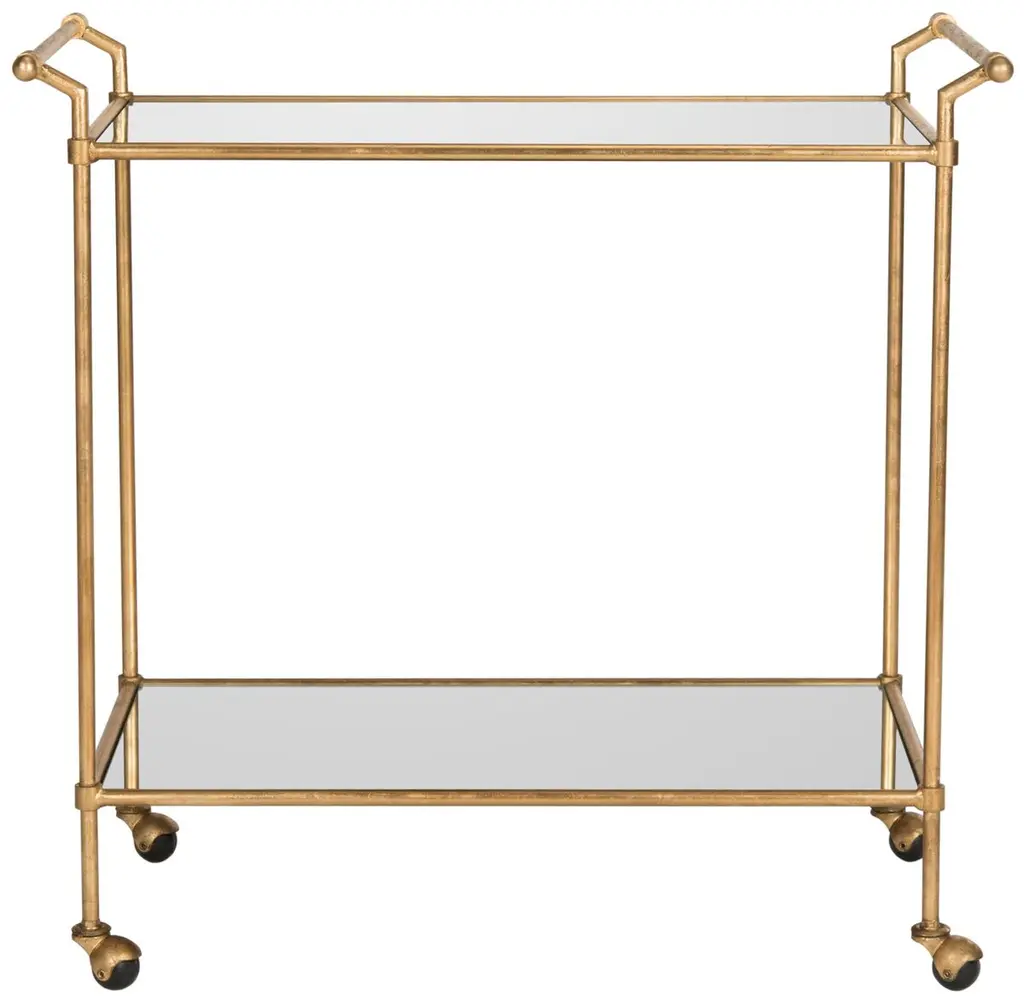 Serve your spirits in style with this sleek iron-and-glass bar cart. Four caster make it easy to move wherever the party may take you.