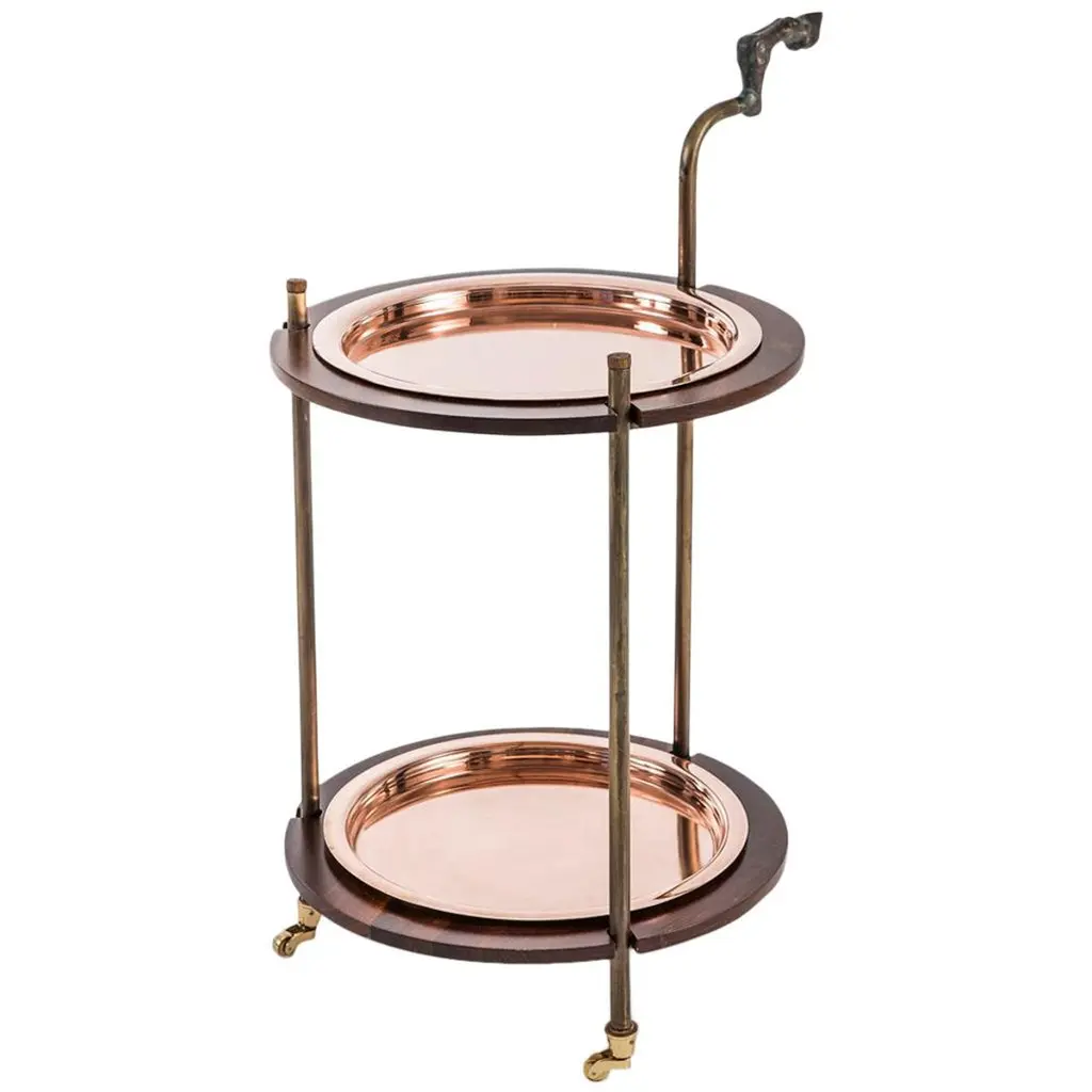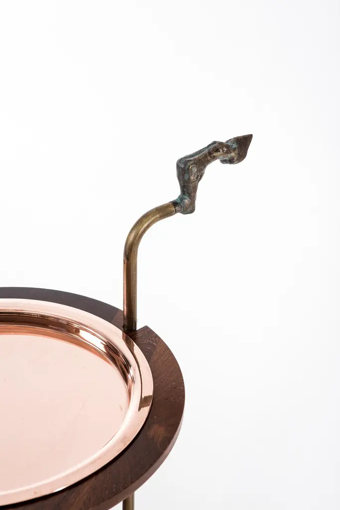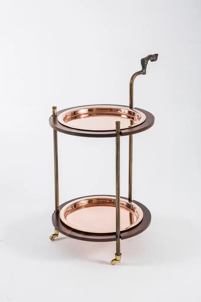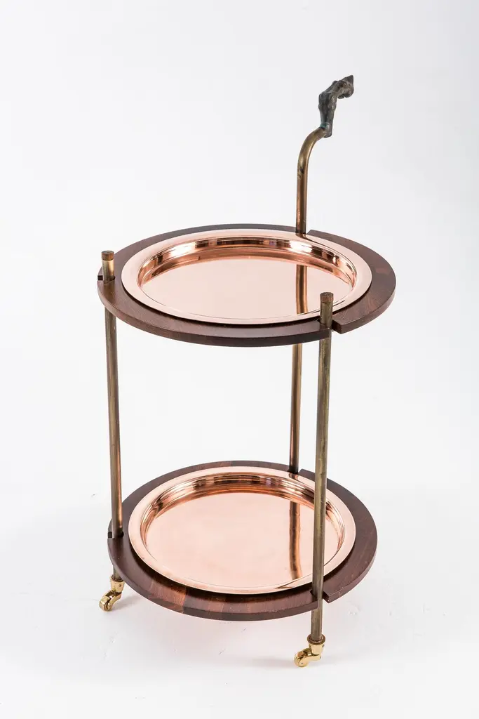 Gazelle drinks trolley by Egg DesignsDimensions: 55 L X 74 W X 100 H cmMaterials: Solid Walnut, Copper, Composite CastingFounded by South Africans and life partners, Greg and Roche Dry - Egg is a unique perspective in contemporary furniture inspired with a soul that’s deeply rooted in the African continent.We believe Egg has a distinctive African design dialect.We dream that our products will not only be judged by their function and form, but by the beauty of their eternal narrative.In everything we create we must answer the question, “Is it Egg enough?”Egg, is a spirited blend of heritage, passion, meaning and African soul. It stands the test of time. It’s curiosities that make you smile. It’s love and truth that can be seen from afar and equally found in the minutest details. That’s why every piece we craft comes from Africa and carries within it a part of the African soul. We’re a melting pot of tribal craft, African heritage and modern luxurious expression.“If it’s not Egg enough, it’s not worth doing!”We have widened the prism of contemporary African design in Modern Antiques, high-end Furniture, lighting and custom interiors inspired by an African provenance for a modern, international customer.