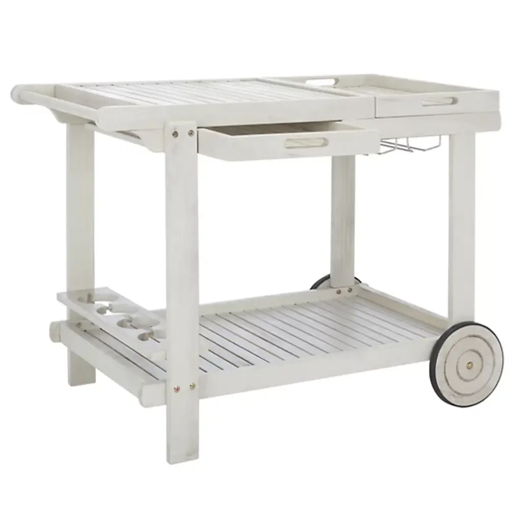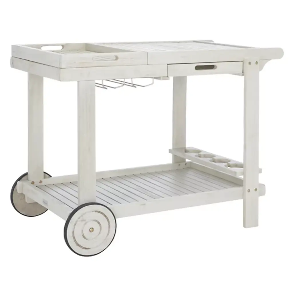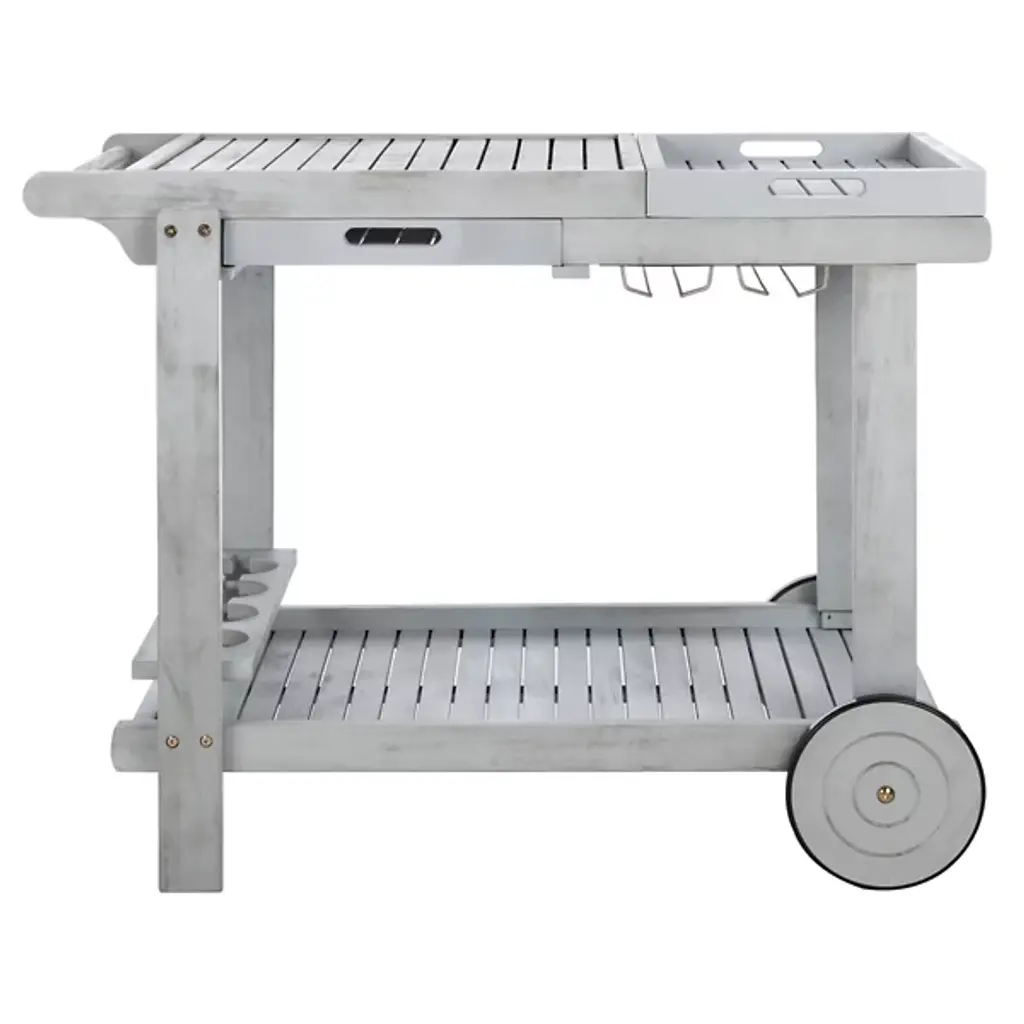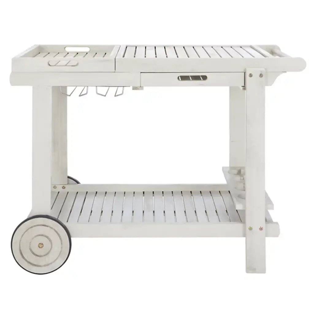 The Gennessee Outdoor Tea Trolley from Alder & Ore modernizes outdoor entertaining with thoughtful functionality. Built-in glass holders prevent spills during transport, while the integrated drawer stores serving essentials. The removable top tray adds serving flexibility, and sturdy wheels make it effortless to move refreshments from kitchen to patio. Sustainable acacia wood construction with galvanized steel accents ensures durability. Multiple storage areas accommodate everything from barware to grilling tools, making this trolley indispensable for outdoor hosts who appreciate organized entertaining.