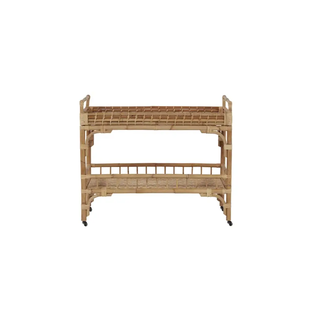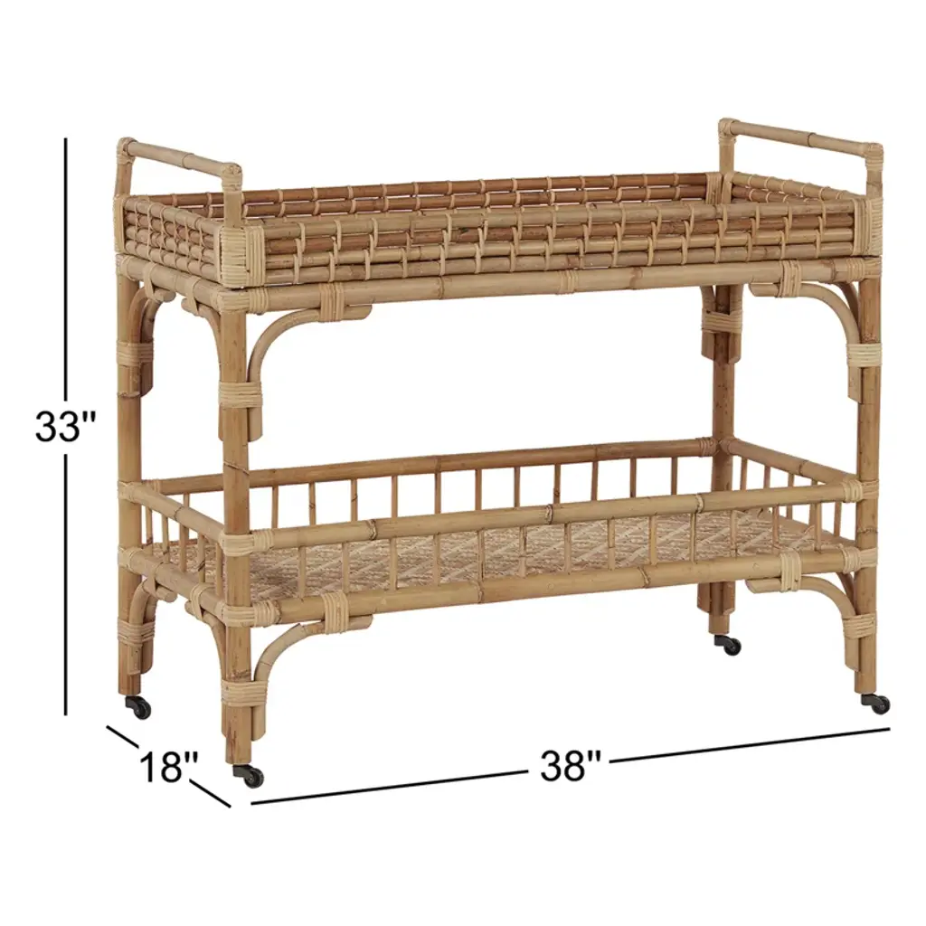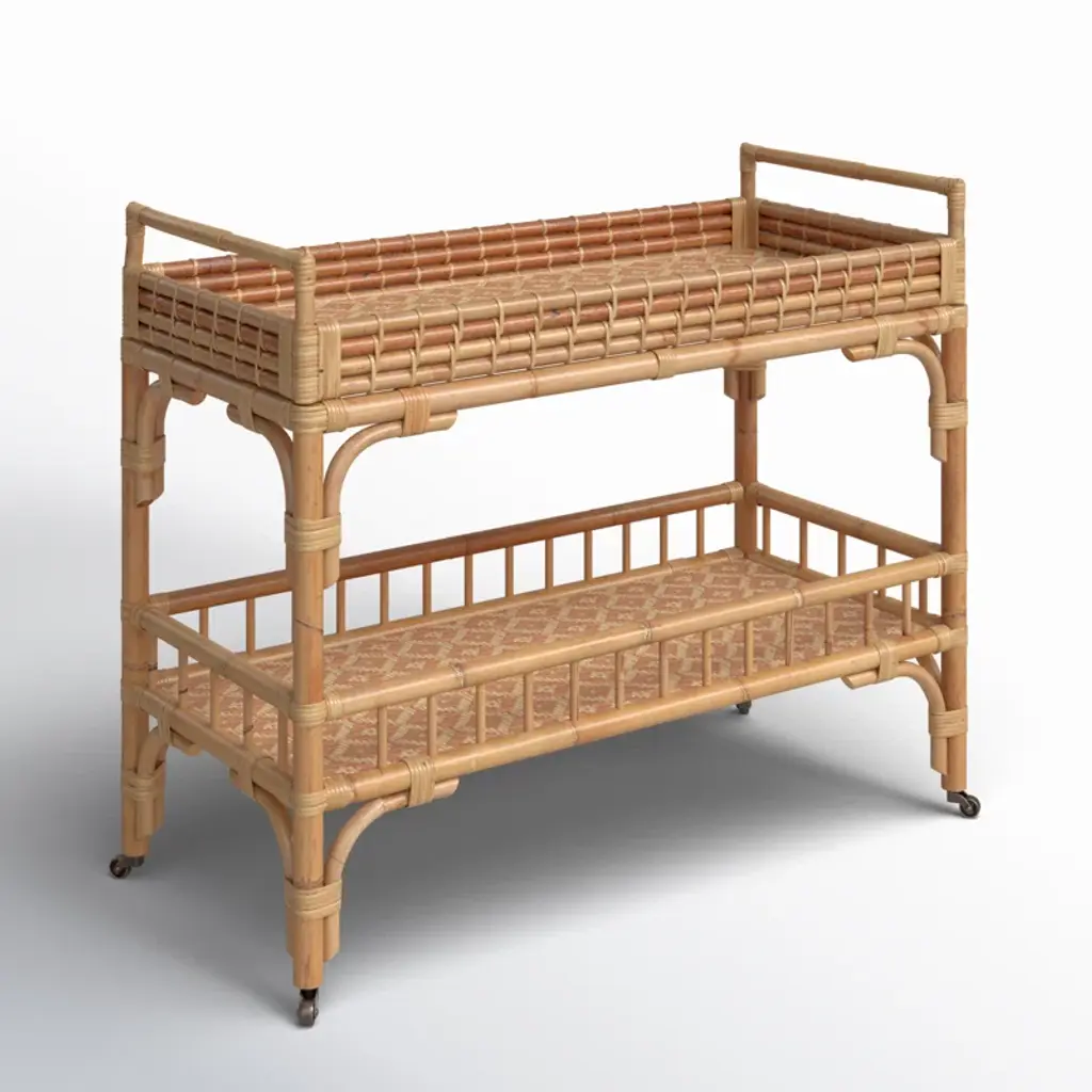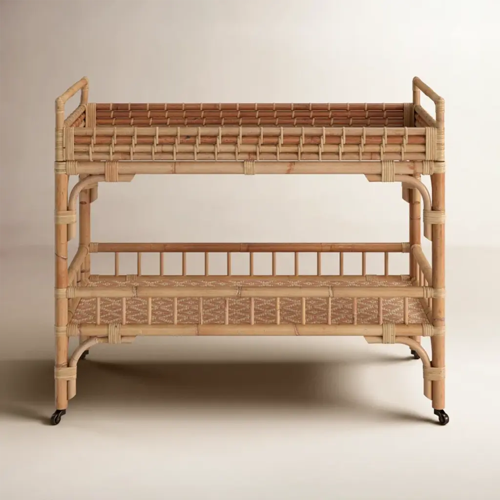 Coastal cocktails coming right up! Celebrate and relax with the Getaway 5 O'clock Bar Cart featuring a rattan, double-tiered body, and casters for added convenience.