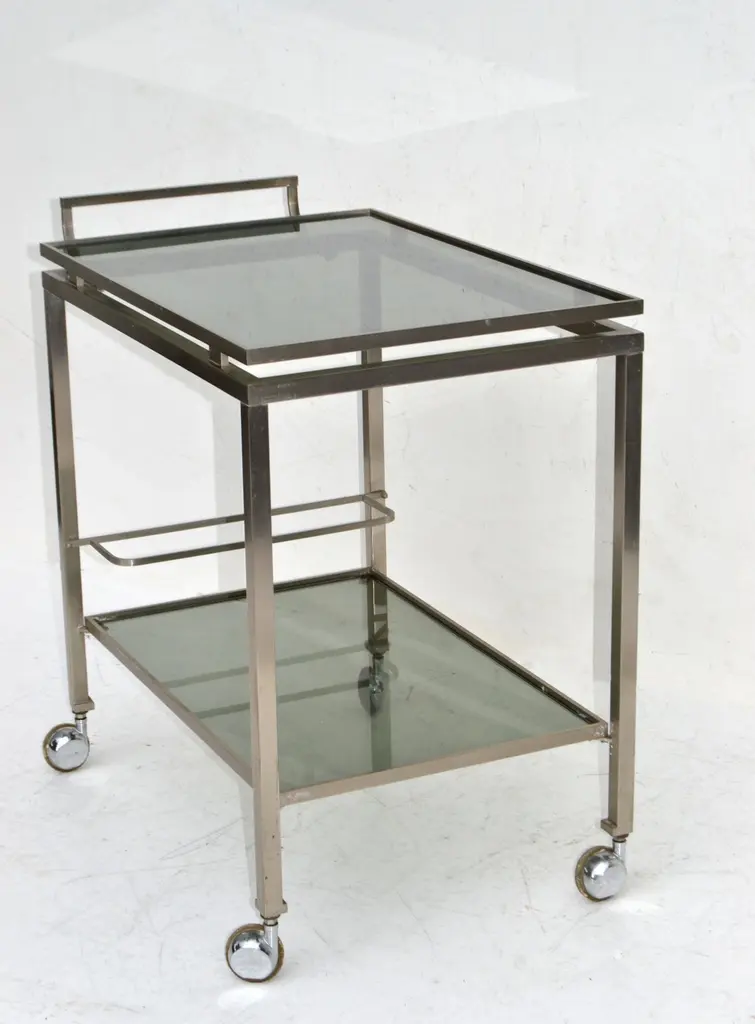 Guy Lefevre Bar Cart Chrome & Smoked Glass Maison Jansen Mid-Century Modern 1965