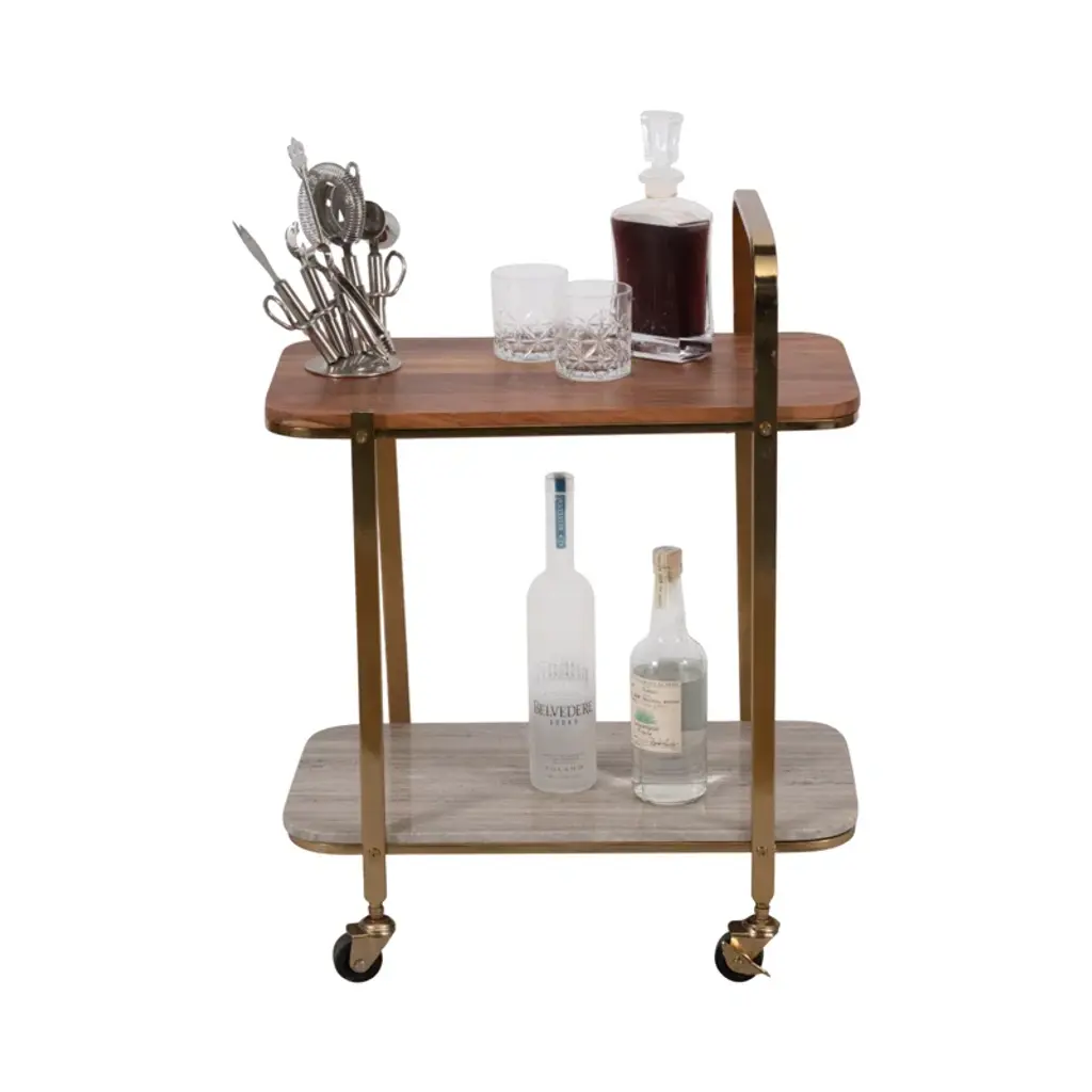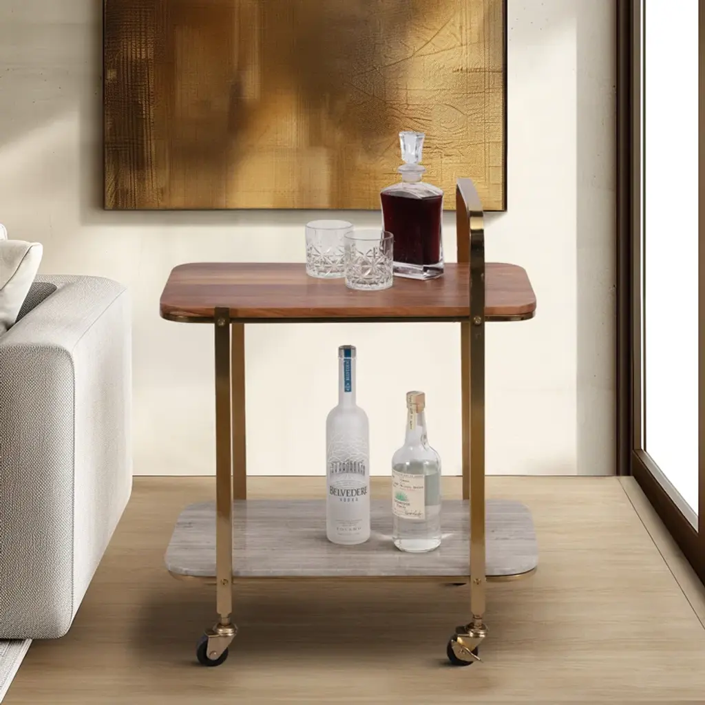 Hibiscus 31"h Gold Bar Cart With Caster Wheels, Marble Shelf, Wine Storage And Sled Bottom For Display And Function In Your Home