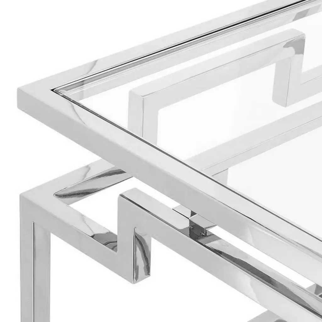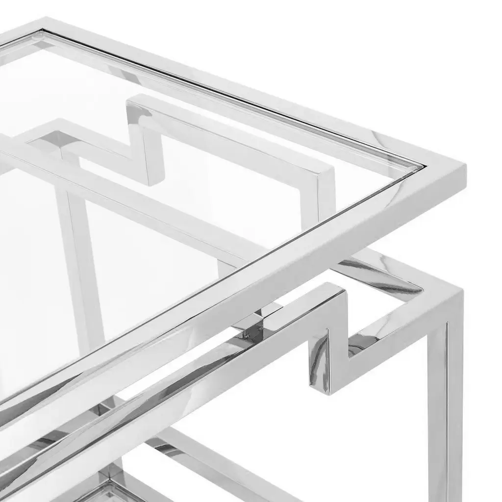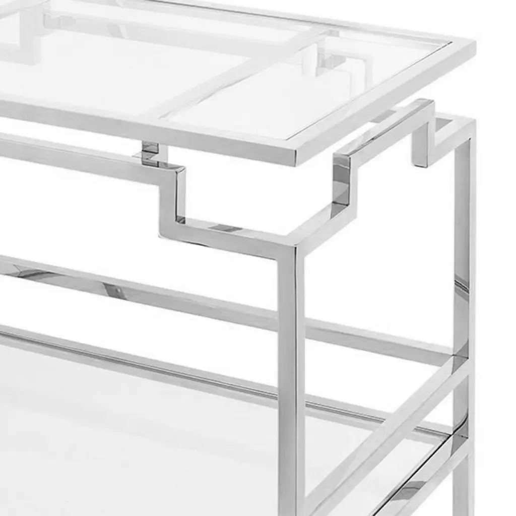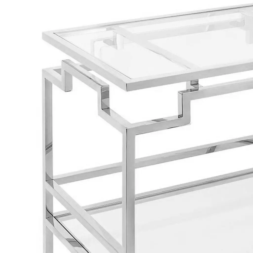 Trolley Howard Chrome bar carts, with steel structure inchrome finish and with 2 bevelled clear glass tops. Trolleywith rotting casters.