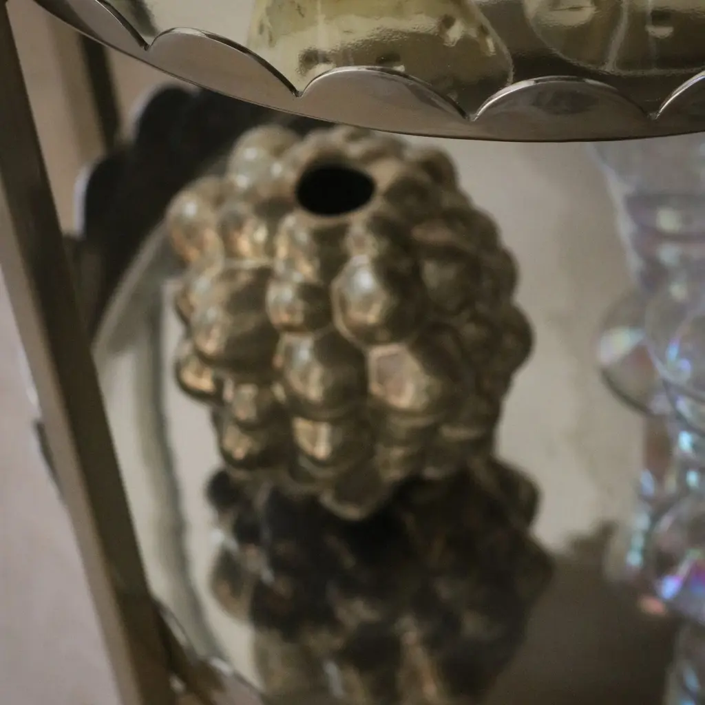 This Iconic 1940s brass bar cart, with its scalloped detailing and elegant proportions, captures the glamour of mid-century American entertaining and the golden era of cocktails. The scalloped edges, a nod to the ornate yet restrained decorative motifs of the era, blending functionality with sculptural beauty. The mirrored tiers reflect the golden glow of the brass frame, enhancing the play of light—perfect for showcasing a well-appointed spirits collection. Bar carts like this became an essential fixture of sophisticated entertaining in the postwar years, a symbol of conviviality and effortless hospitality.