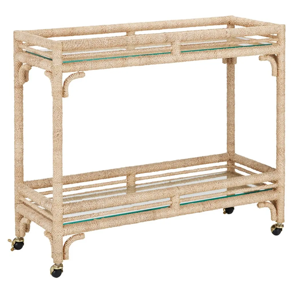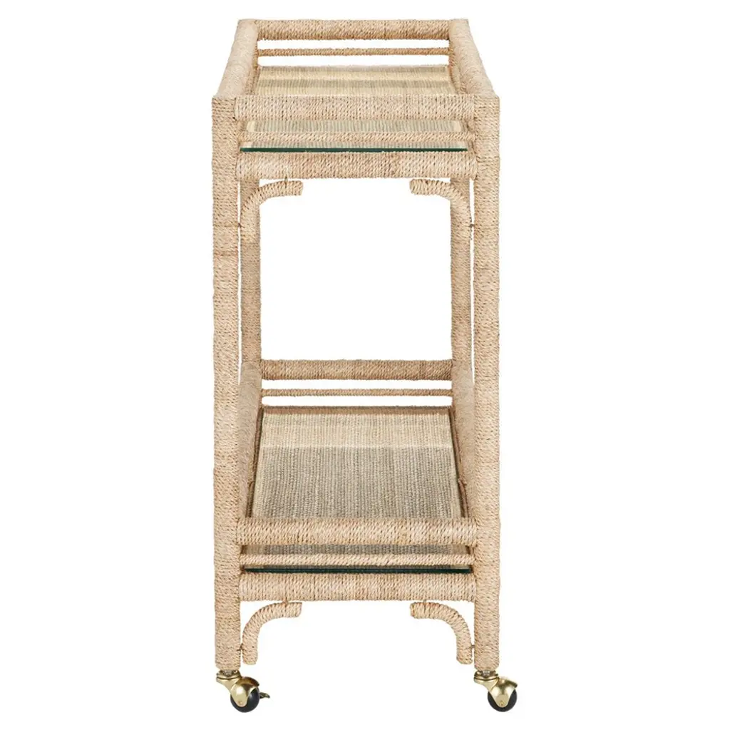 Jesse Coastal Beach Natural Woven Abaca Bar Cart