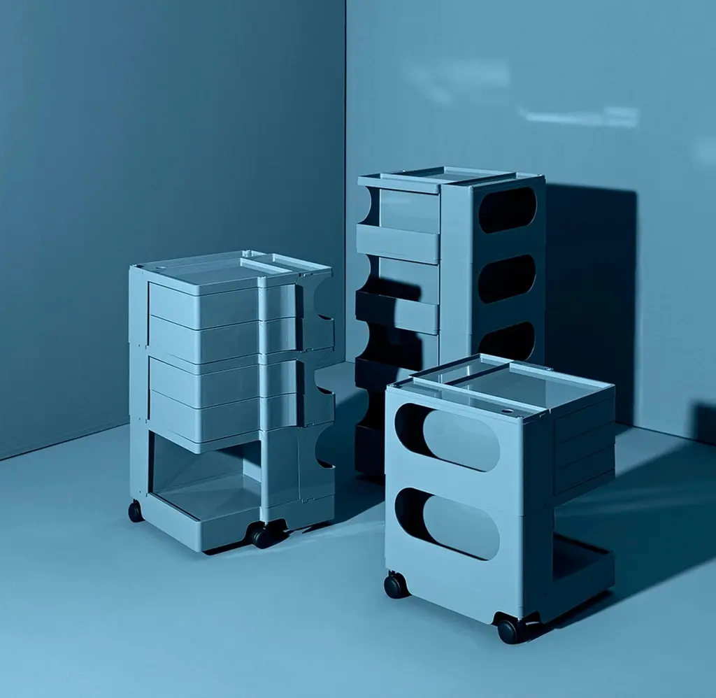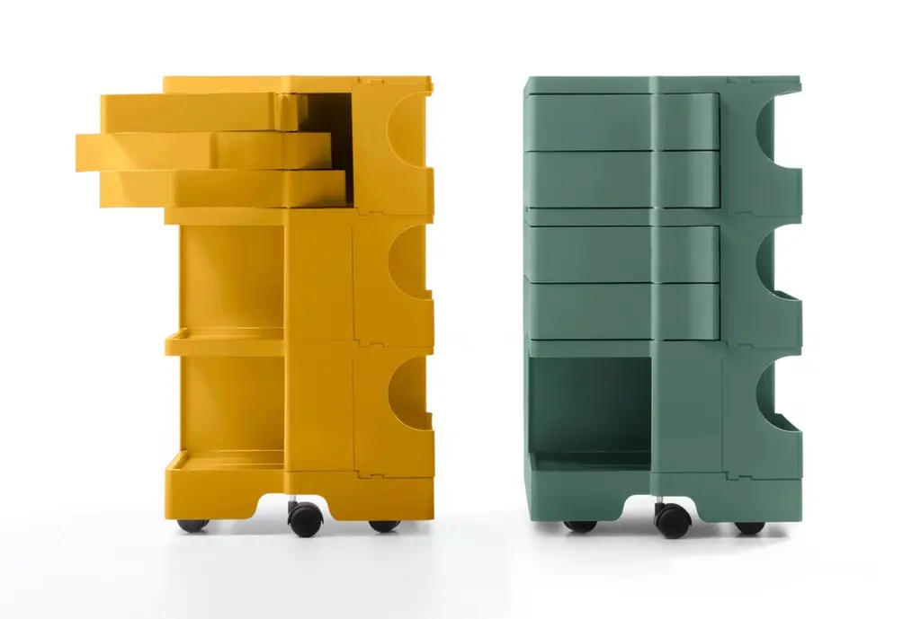 Joe Colombo 'Boby' Trolley for B-Line. Designed in 1970, current production. Part of the permanent collection of MoMA in New York and the “Triennale” in Milan, Smau Prize in 1971. Boby is much more than a simple container: it made design history. Functionality and detail are its strong points which, together with an undeniably pop flavour, continue to make it the most popular storage trolley in creativity sectors as well as in the medical, and in the home. Designed with injection-moulded ABS plastic drawers and compartments that guarantee simple vertically modular solutions, Boby provides versatile customised storage capacity, while its polypropylene casters guarantee full mobility.About Joe Colombo:Cesare (known as Joe) Colombo was born in Milan in 1930. Essentially self-taught, he attended the Academy in Brera and then the faculty of Architecture at the Politecnico in Milan for a few years. Before becoming a designer he worked as a painter, builder, car salesman (his passion for cars remained with him) and entrepreneur in the electrics field. The technological utopia of Joe Colombo’s designs encompasses many of the hopes of the Sixties in Italy and Europe without becoming imprisoned by ideological restraints.Here are a few of the most significant milestones in his extremely rapid escalation to designer of international renown, the symbol of an era.In 1963 he opened his first studio in Milan.In 1964 he won 3 medals at the “XIII Triennale” in Milan.In 1967 he won the Gold Compass.In 1968 he received his first International Design Award in Chicago.In 1969 three of his objects were already part of the permanent collection at MoMA.He died prematurely on 30th July 1971 on his 41st birthday.
