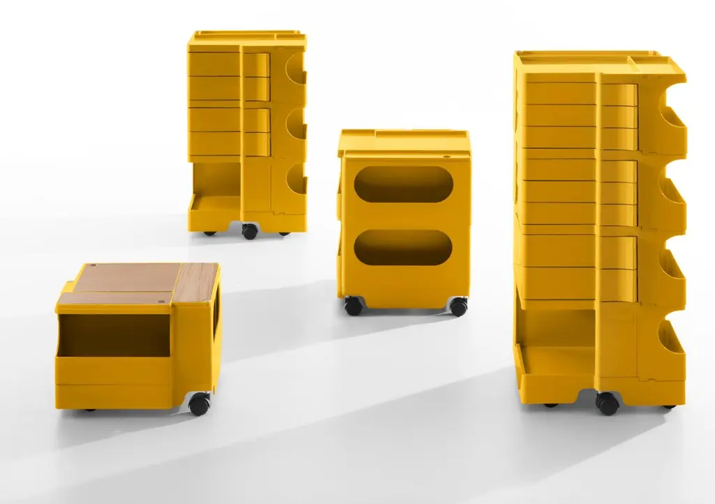 Joe Colombo 'Boby' Trolley for B-Line. Designed in 1970, current production. Part of the permanent collection of MoMA in New York and the “Triennale” in Milan, Smau Prize in 1971. Boby is much more than a simple container: it made design history. Functionality and detail are its strong points which, together with an undeniably pop flavour, continue to make it the most popular storage trolley in creativity sectors as well as in the medical, and in the home. Designed with injection-moulded ABS plastic drawers and compartments that guarantee simple vertically modular solutions, Boby provides versatile customised storage capacity, while its polypropylene casters guarantee full mobility.About Joe Colombo:Cesare (known as Joe) Colombo was born in Milan in 1930. Essentially self-taught, he attended the Academy in Brera and then the faculty of Architecture at the Politecnico in Milan for a few years. Before becoming a designer he worked as a painter, builder, car salesman (his passion for cars remained with him) and entrepreneur in the electrics field. The technological utopia of Joe Colombo’s designs encompasses many of the hopes of the Sixties in Italy and Europe without becoming imprisoned by ideological restraints.Here are a few of the most significant milestones in his extremely rapid escalation to designer of international renown, the symbol of an era.In 1963 he opened his first studio in Milan.In 1964 he won 3 medals at the “XIII Triennale” in Milan.In 1967 he won the Gold Compass.In 1968 he received his first International Design Award in Chicago.In 1969 three of his objects were already part of the permanent collection at MoMA.He died prematurely on 30th July 1971 on his 41st birthday.