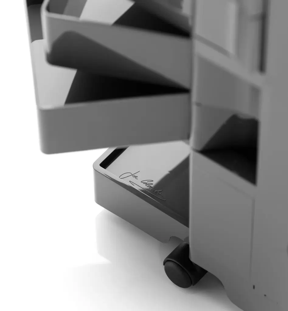 Joe Colombo 'Boby' Trolley for B-Line. Designed in 1970, current production. Part of the permanent collection of MoMA in New York and the “Triennale” in Milan, Smau Prize in 1971. Boby is much more than a simple container: it made design history. Functionality and detail are its strong points which, together with an undeniably pop flavour, continue to make it the most popular storage trolley in creativity sectors as well as in the medical, and in the home. Designed with injection-moulded ABS plastic drawers and compartments that guarantee simple vertically modular solutions, Boby provides versatile customised storage capacity, while its polypropylene casters guarantee full mobility.About Joe Colombo:Cesare (known as Joe) Colombo was born in Milan in 1930. Essentially self-taught, he attended the Academy in Brera and then the faculty of Architecture at the Politecnico in Milan for a few years. Before becoming a designer he worked as a painter, builder, car salesman (his passion for cars remained with him) and entrepreneur in the electrics field. The technological utopia of Joe Colombo’s designs encompasses many of the hopes of the Sixties in Italy and Europe without becoming imprisoned by ideological restraints.Here are a few of the most significant milestones in his extremely rapid escalation to designer of international renown, the symbol of an era.In 1963 he opened his first studio in Milan.In 1964 he won 3 medals at the “XIII Triennale” in Milan.In 1967 he won the Gold Compass.In 1968 he received his first International Design Award in Chicago.In 1969 three of his objects were already part of the permanent collection at MoMA.He died prematurely on 30th July 1971 on his 41st birthday.