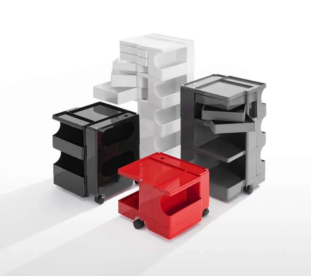 Joe Colombo 'Boby' Trolley for B-Line. Designed in 1970, current production. Part of the permanent collection of MoMA in New York and the “Triennale” in Milan, Smau Prize in 1971. Boby is much more than a simple container: it made design history. Functionality and detail are its strong points which, together with an undeniably pop flavour, continue to make it the most popular storage trolley in creativity sectors as well as in the medical, and in the home. Designed with injection-moulded ABS plastic drawers and compartments that guarantee simple vertically modular solutions, Boby provides versatile customised storage capacity, while its polypropylene casters guarantee full mobility.About Joe Colombo:Cesare (known as Joe) Colombo was born in Milan in 1930. Essentially self-taught, he attended the Academy in Brera and then the faculty of Architecture at the Politecnico in Milan for a few years. Before becoming a designer he worked as a painter, builder, car salesman (his passion for cars remained with him) and entrepreneur in the electrics field. The technological utopia of Joe Colombo’s designs encompasses many of the hopes of the Sixties in Italy and Europe without becoming imprisoned by ideological restraints.Here are a few of the most significant milestones in his extremely rapid escalation to designer of international renown, the symbol of an era.In 1963 he opened his first studio in Milan.In 1964 he won 3 medals at the “XIII Triennale” in Milan.In 1967 he won the Gold Compass.In 1968 he received his first International Design Award in Chicago.In 1969 three of his objects were already part of the permanent collection at MoMA.He died prematurely on 30th July 1971 on his 41st birthday.