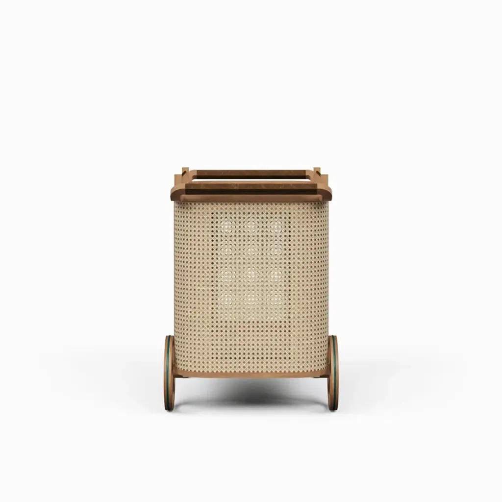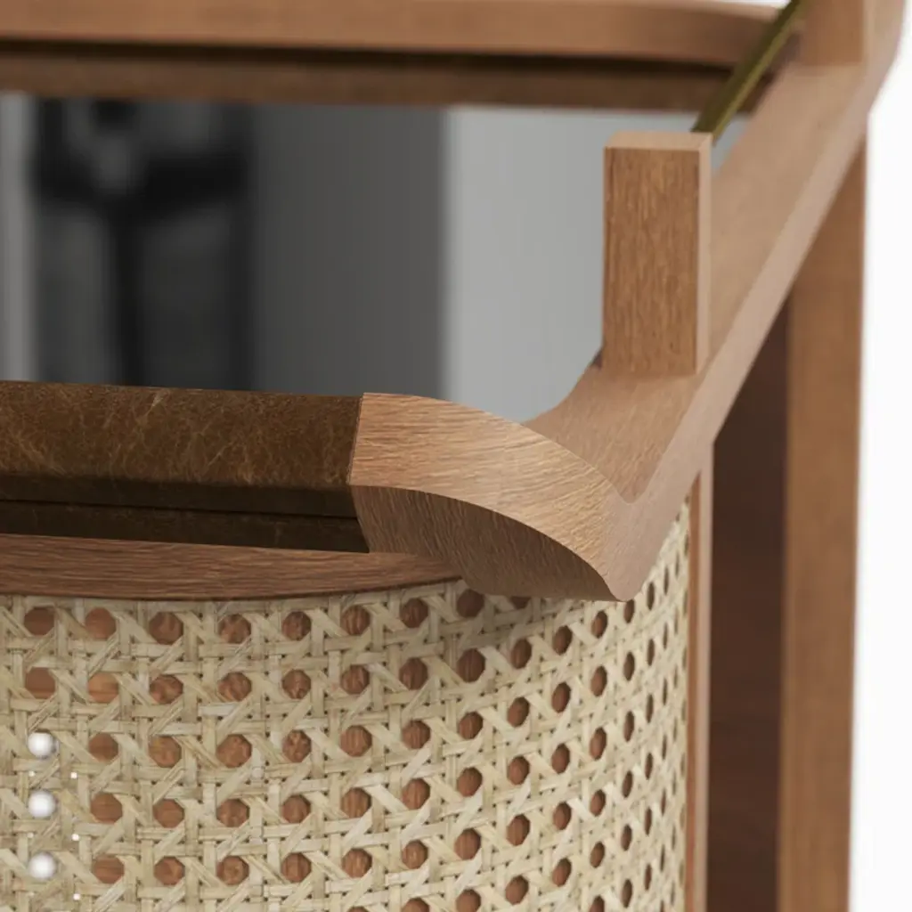 This 39'' bar cart blends timeless elegance with coastal flair – so style and storage come together. Crafted from solid wood, it features a mirrored glass top, as well as rounded corners and cane-webbed sides for a coastal-inspired feel. Double handles and vintage-style wheels make it easy to move from room to room. Two shelves offer ample space for your favorite spirits and glassware, just right for entertaining guests or creating lasting memories with loved ones. Place it in your dining area or living room, where it doubles as extra shelves between parties.