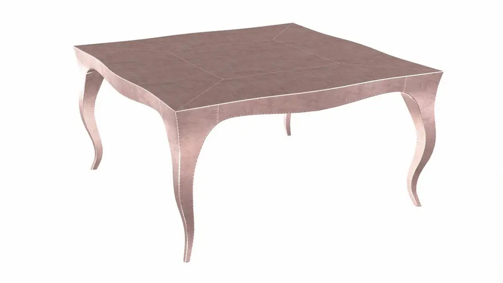 Nesting Tables from our Louise Collection. The renowned designer Paul Mathieu chose the name “Louise” when he created his more feminine version of Louis XV (1730-1760) furniture. The characteristic cabriole leg, curving outward at the knee and inward towards the foot in an "S" shape was born during this period. It is during the same era that English furniture makers produced the Queen Anne and Chippendale styles.Crafted with utmost care and attention to detail, these Louis Nesting Tables are made to order and are available in twelve metal clad finishes, ensuring that you can choose the perfect one to match your individual style and taste. The use of high-quality materials and expert craftsmanship ensure that each Art Deco Louis Nesting Tables is not only beautiful but also a true piece of art.The curved legs and side arms of this Art Deco Louis Nesting Tables are hand carved from solid pieces of teak. Pattern makers trace and cut complex forms that will cover the chair in a skin of copper, white bronze, brass or antiqued white bronze The metal finishes will tarnish over time. Regular non-abrasive household metal polishes can be used to restore the original luster.Overall, if you're looking for a piece of furniture that combines luxury, comfort, and style, then the Art Deco Nesting Tables is an excellent choice. With its distinctive curved profile and multiple finish options, this Chair set is sure to elevate the look of any room it is placed in, and be a beloved addition to your home for years to come.The images shown in this listing are shot in different lighting conditions and/or are 3D illustrations. We encourage our customers to please request a sample or a full sample set of 12 finishes so that they can experience the finish first hand. Louise Art Deco Carts and Bar Carts Fine Hammered Copper by Paul MathieuSize- 31.5"x 31.5"x 16"HMaterials - Copper, Metal sheet, Teak, Wood, MetalTechniques: Hand-Crafted, Hand-Carved, Metal Work, Wood Work, Metal Wrapping, PolishedPlease note that moisture in air, sudden change in temperature and natural movement of wood over time causes the metal to wrinkle or bubble up. We use well seasoned, reclaimed teak and high quality marine grade MDF (wherever technically possible) to avoid and delay the mentioned changes. However a perfect stability of metal cannot be guaranteed. Please note that our smooth finish metal clad pieces will have some unavoidable tool marks. This is proof that everything is done by hand. The smooth finish will not come out like a machine made perfect surface and the master artisan will do their best to make it look as good/clean/stable/perfect as he possibly can.The antique white bronze finish is hand done by using an acidic chemical over the white bronze finish to recreate a natural patination. Like with the natural patination of silver, copper, or brass, the final result and color uniformity of the patina cannot be guaranteed. The goal of this finish is to achieve rainbow-like shades with dull, shiny, cloudy, and streaky patches to give an illusion of antiquing. Please note:None of our metal clad pieces are treated with a protective “finish” thus enabling the items to age naturally over time. We will of course polish them well before we pack them. a) Copper oxidizes faster than the other metals. In six to twelve months it will most likely lose its shine and will gradually turn to different shades of brown and/or green/blue. This aging process and its effect is referred to as verdigris. After a year the piece should not change much more. Copper does not rust, but does require periodic cleaning in order to retain its original shine if that the preferred option. ('BRASSO' or any known copper polish can be used to polish copper).b) Brass retains its shine for far longer than others, but will tarnish if not cleaned on occasion. ('BRASSO' is made to polish brass).c) White bronze, has the least tendency to show age or tarnish. If kept in a controlled climate, this metal will hold its shine for years. It can be cleaned with a cleanser and polished with a cloth. d) The antiqued white bronze finish will react with the natural elements the fastest in the beginning but it too will stop reacting and will settle down in a stable state like copper after 6-12 months. Since it is already antiqued and looked like it is tarnished, as described in an earlier message, this fast reaction will not change the over all look. In that way this surface is most forgiving. The images shown in this listing are shot in different lighting conditions and/or are 3D illustrations. We encourage our customers to please request a sample or a full sample set of 12 finishes so that they can experience the finish first hand.