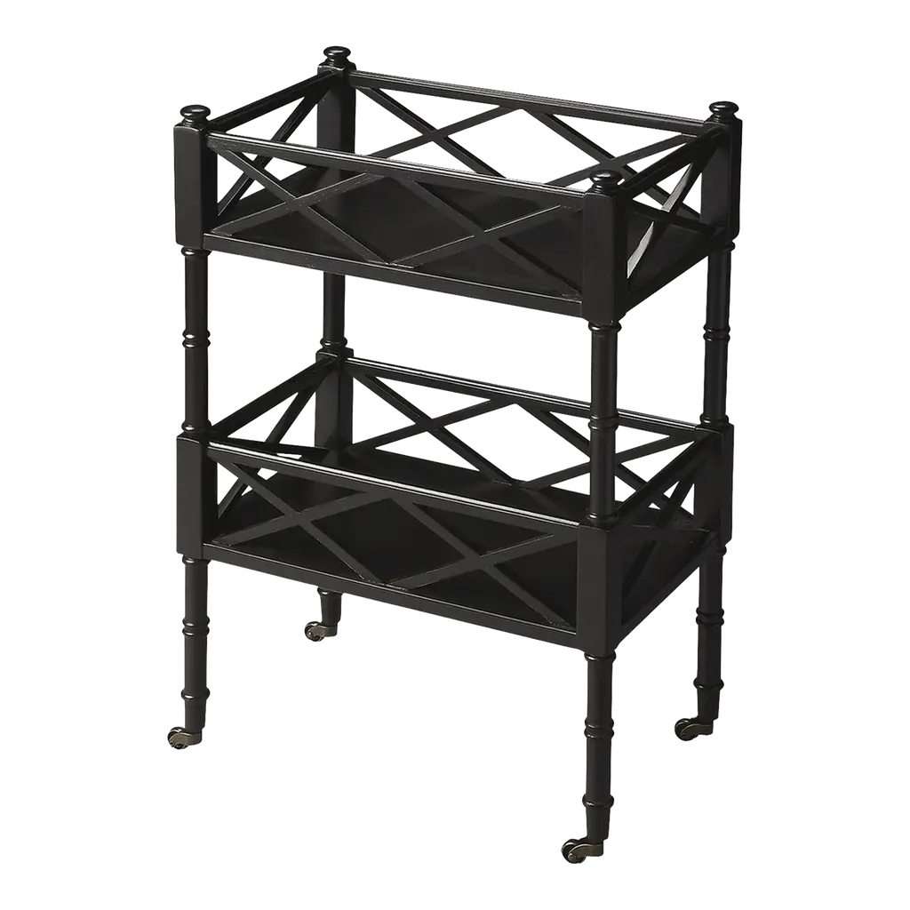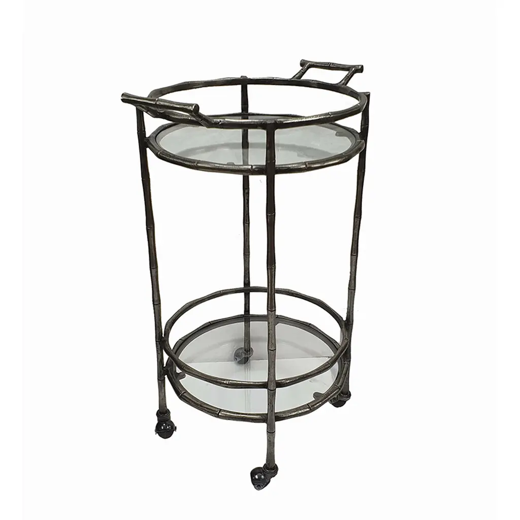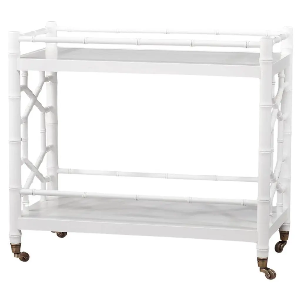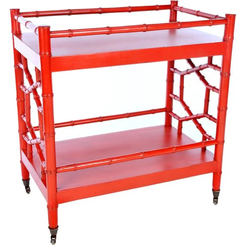 Made of durable mahogany carved to look like bamboo and given a vibrant red finish, this tea cart is as practical as it is elegant. Its two shelves can hold a wealth of bottles, drinkware, plants, or just about anything else you can think of. Wheels make it easy to move from room to room.
