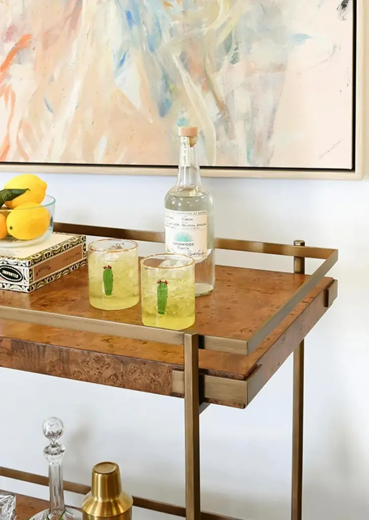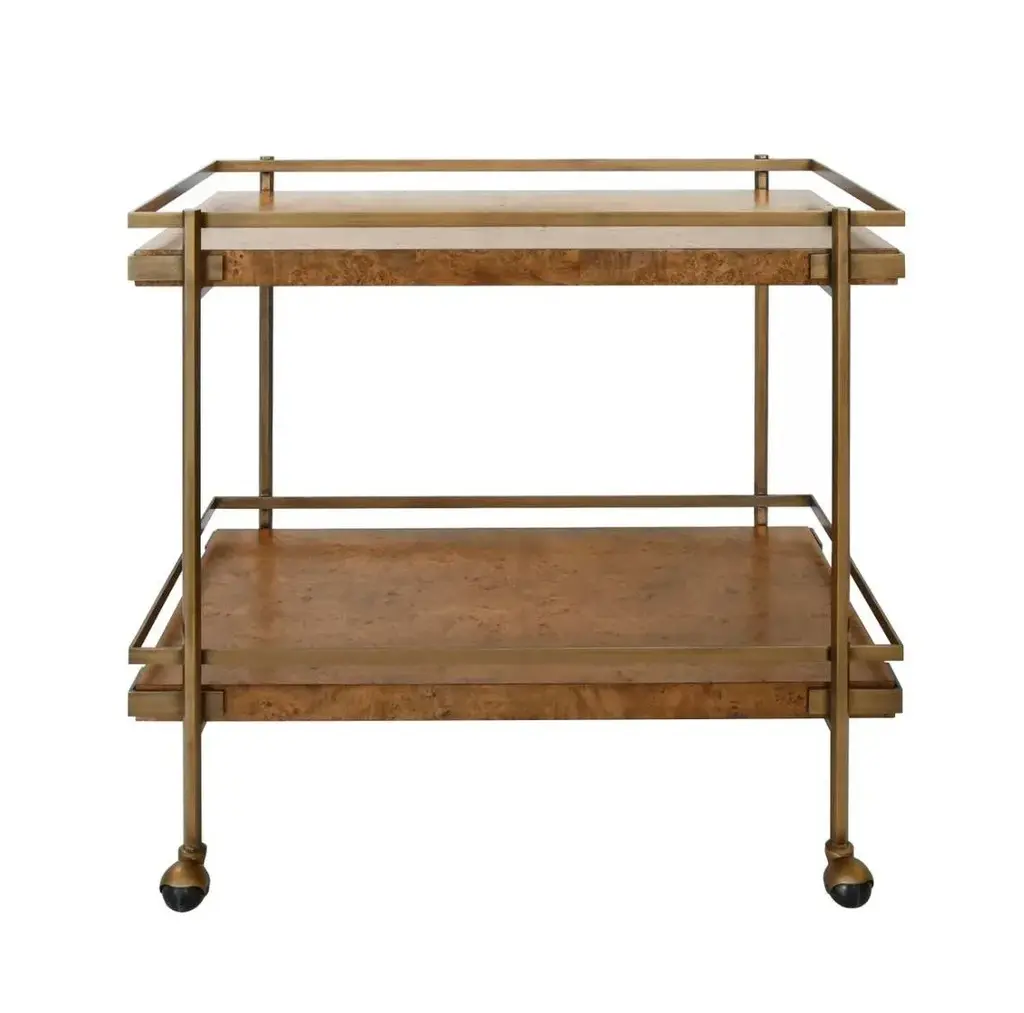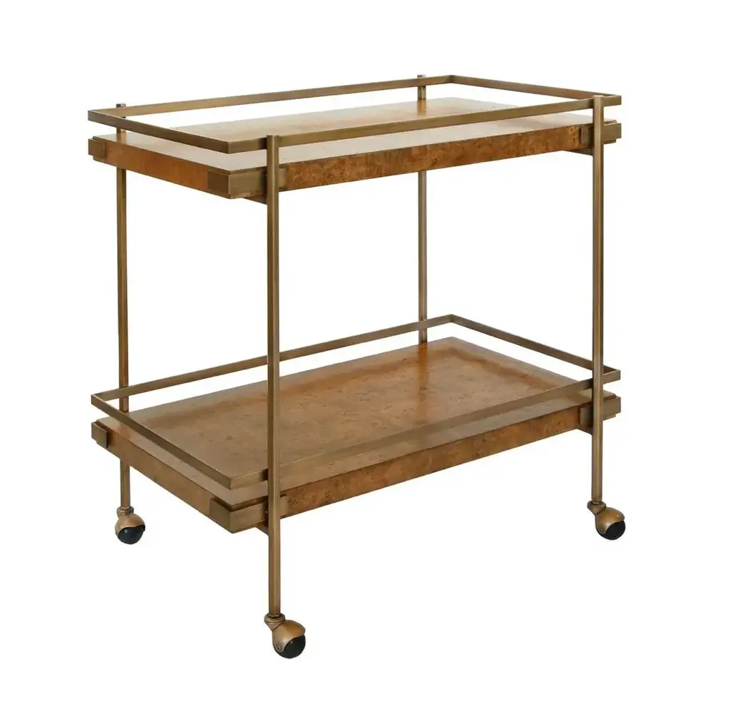 Matthew Izzo Home Dark Burl And Brass Art Deco Style Bar Cart