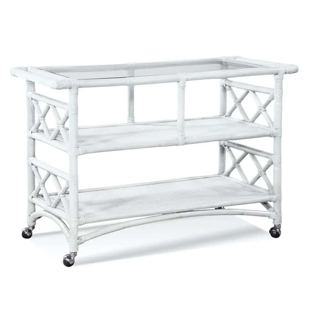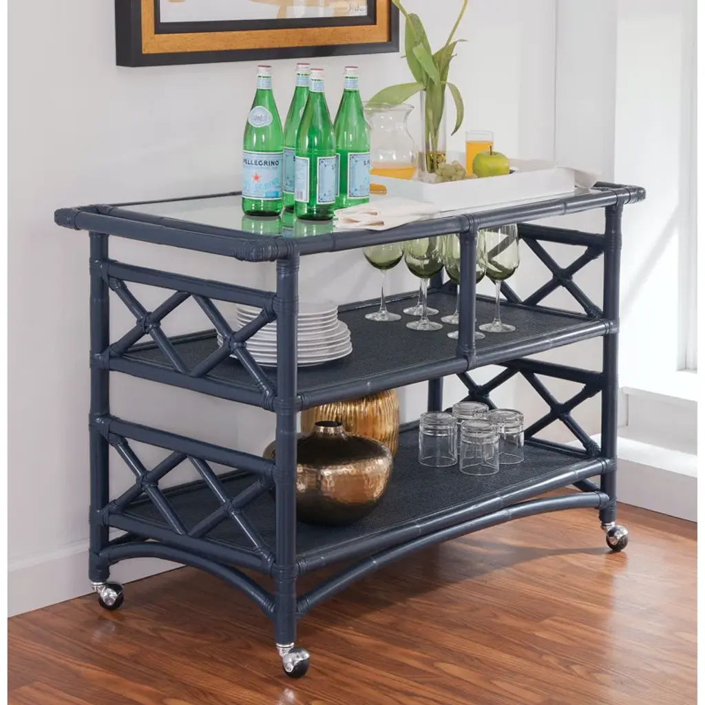 The Montgomery Bar Cart is the perfect fill-in. Wine and dine your guests in style with this rattan bar cart on wheels.
